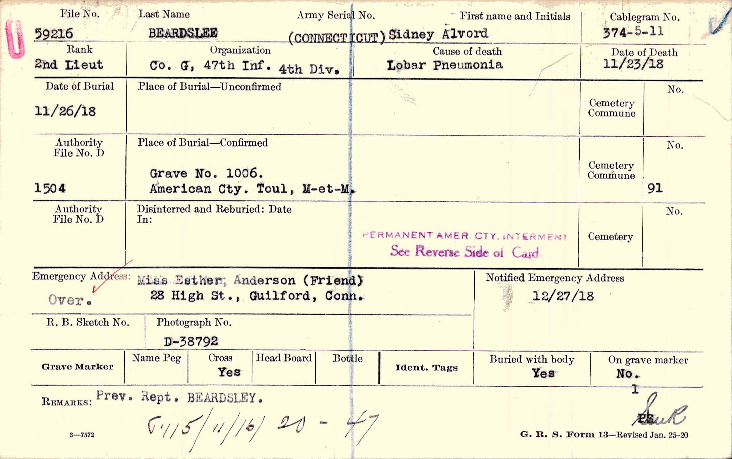 Grave 1006., American Cty., Toul, M-et-M.