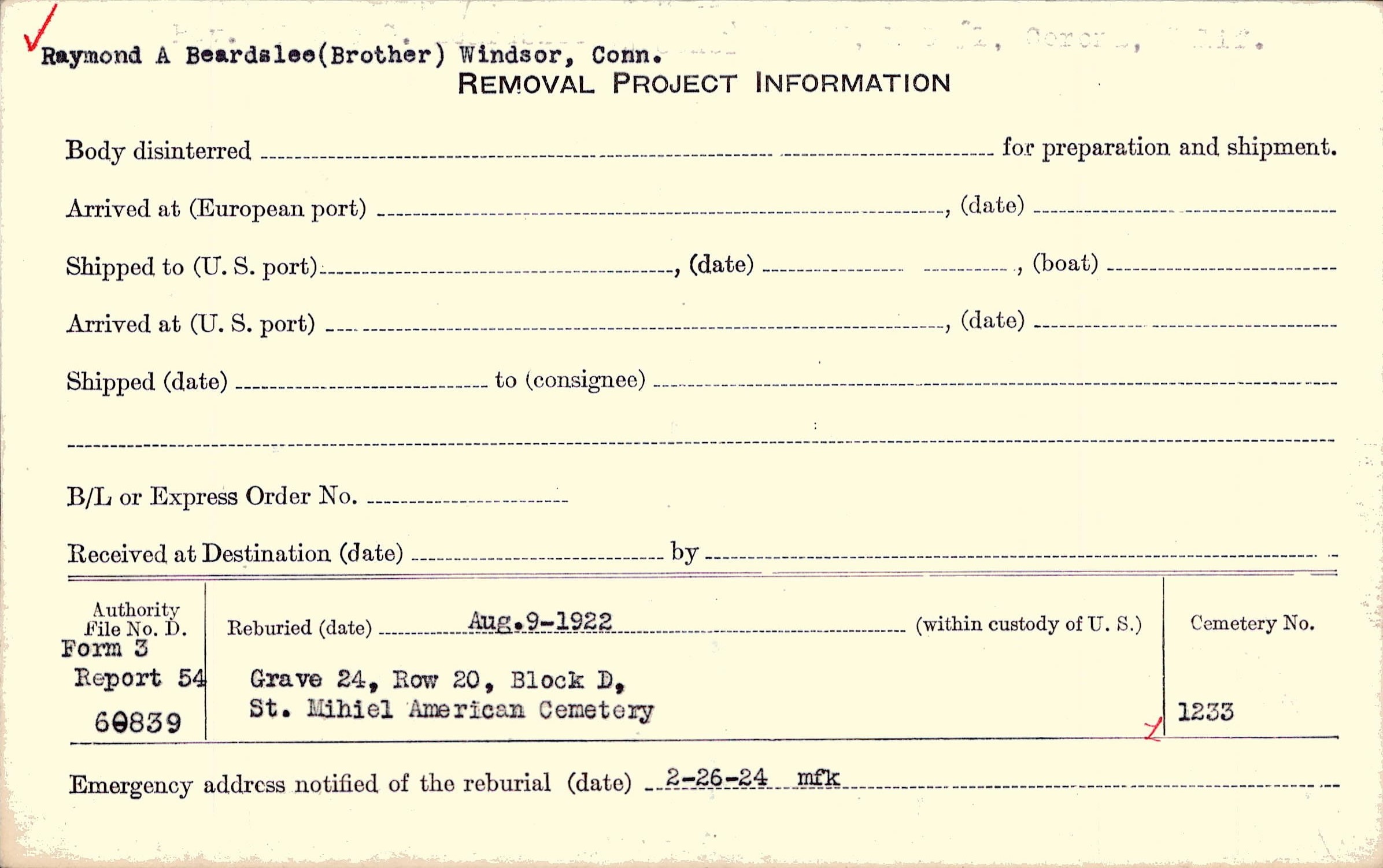 Raymond A Beardslee (Brother) Windsor, Conn. |
