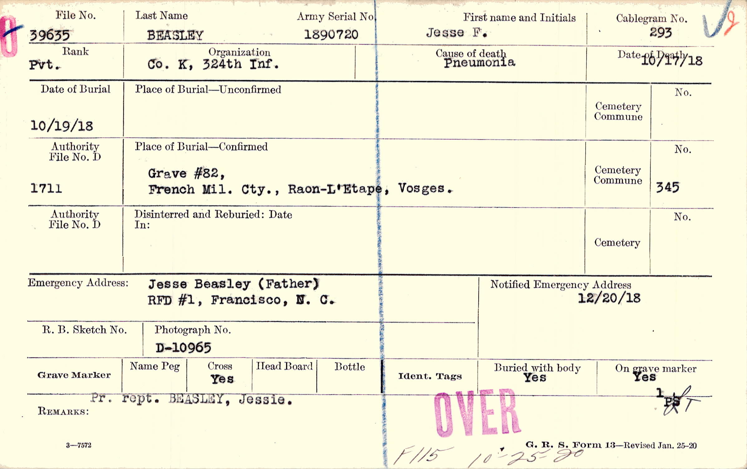 Grave #82, French Mil. Cty., Raon-L'Etape, Vosges.