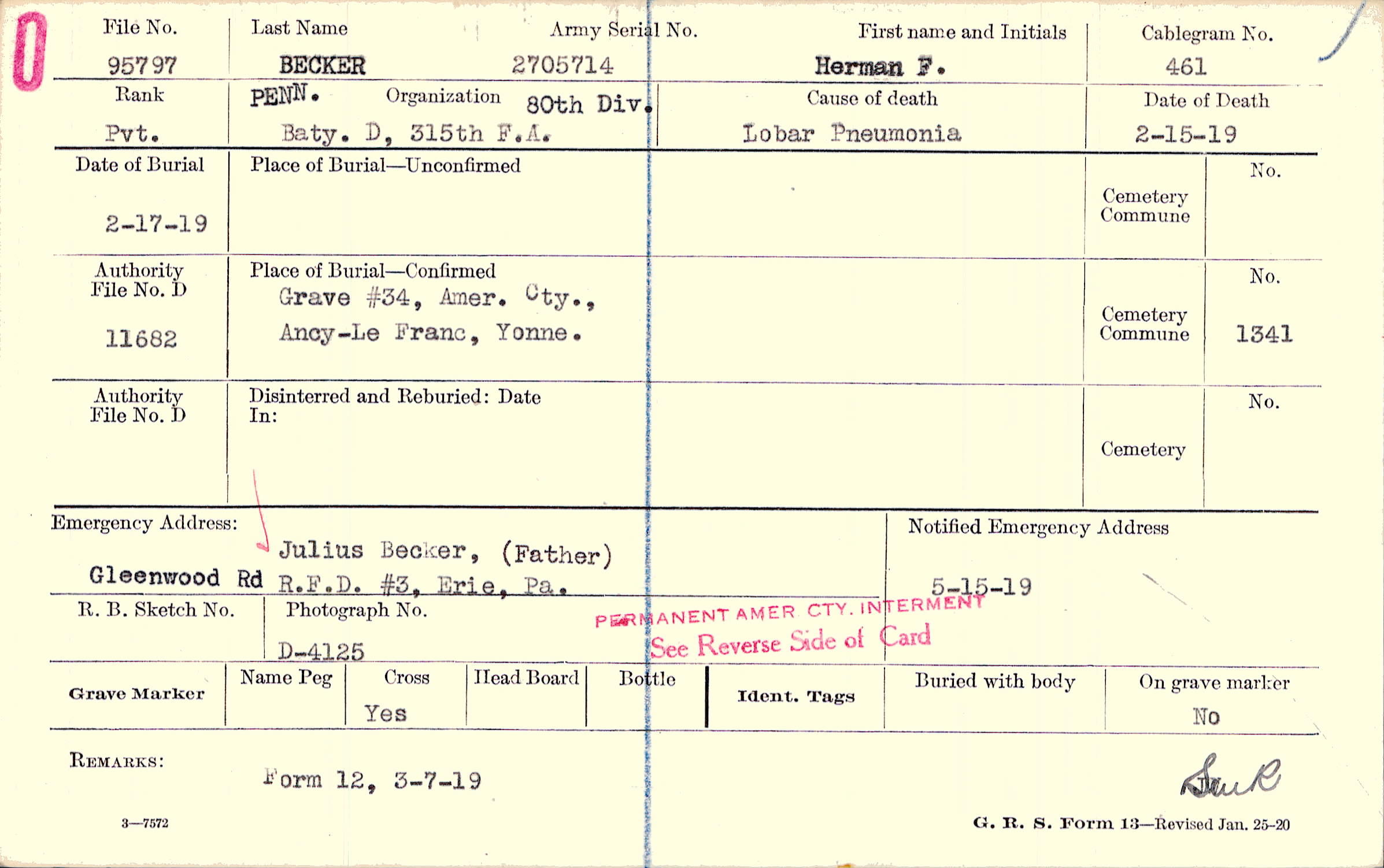 Grave #34, Amer. Cty., Ancy-Le Franc, Yonne.