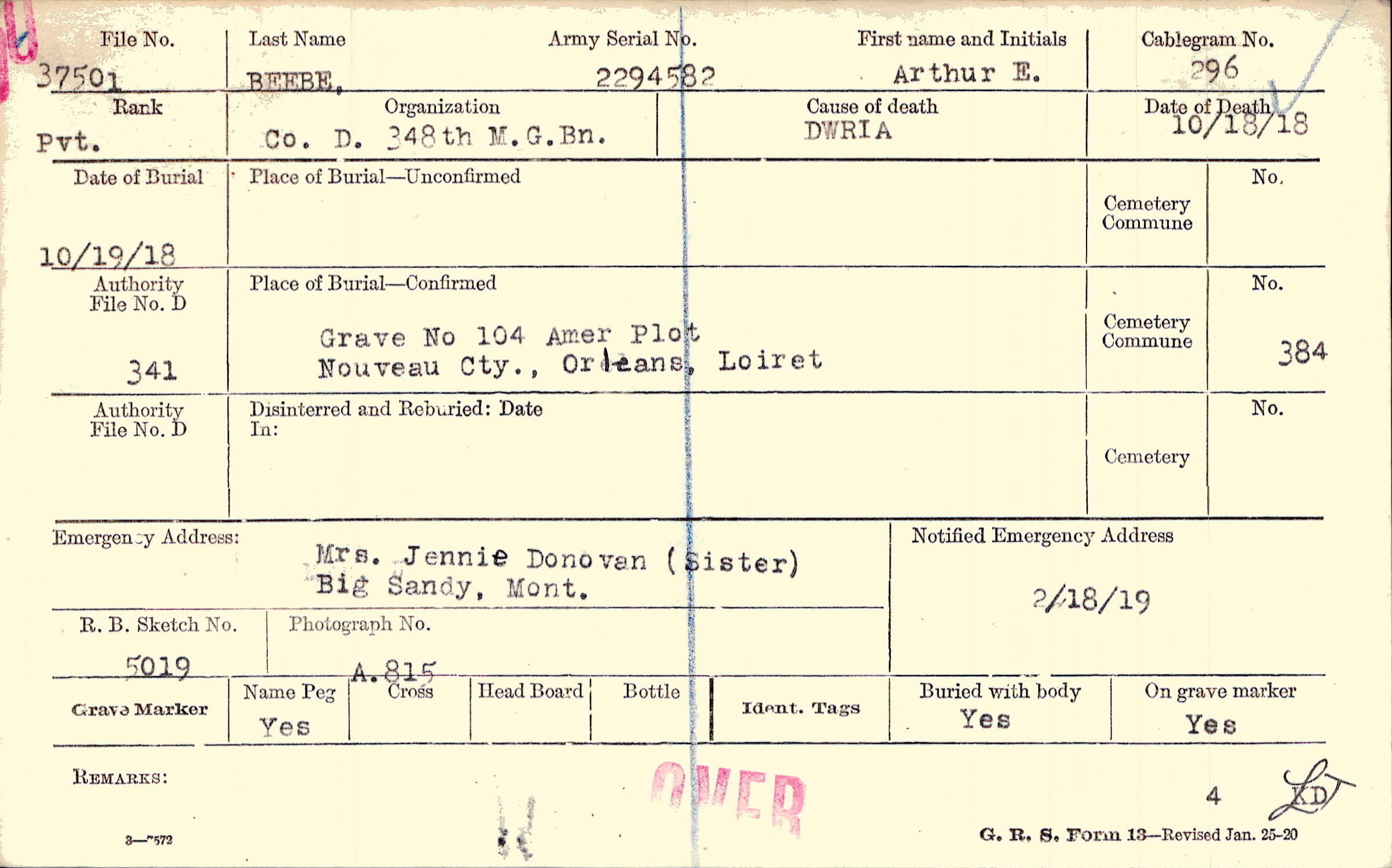 Grave 104, Amer. Plot, Nouveau Cty., Orleans, Loiret