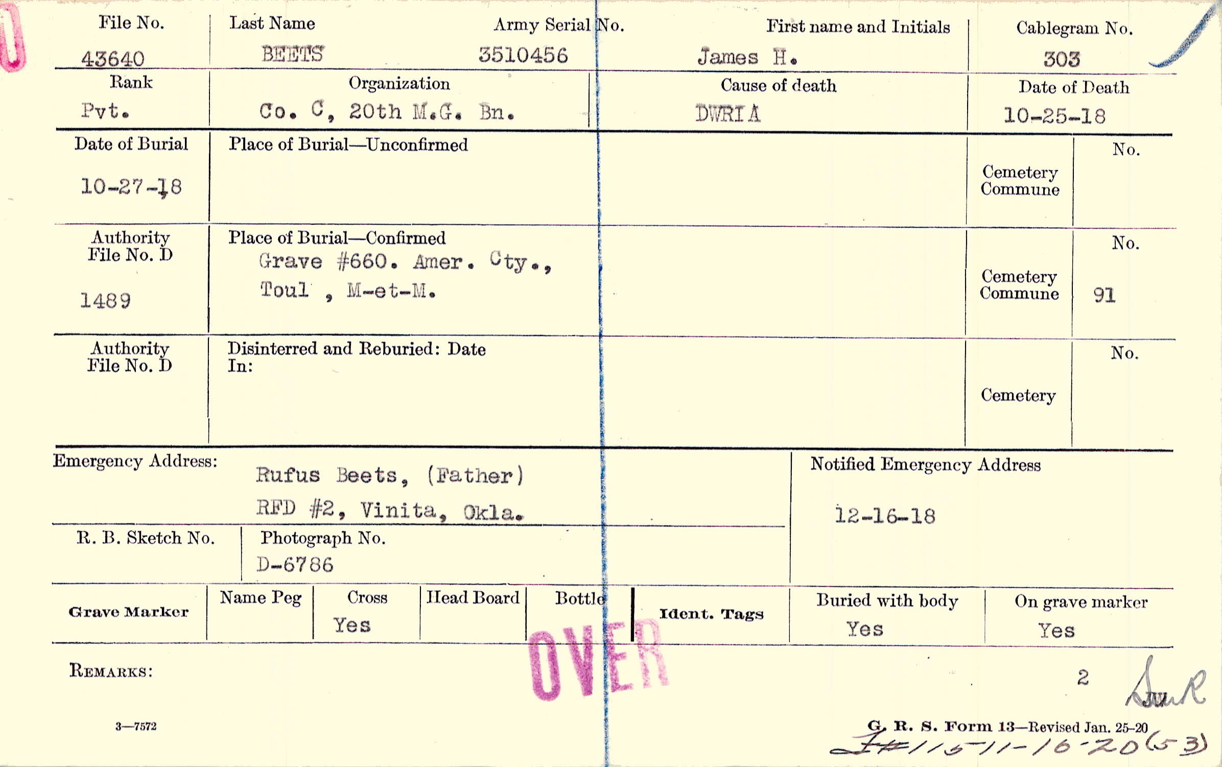 GRAVE #660., AMER. CTY., TOUL, M-ET-M.