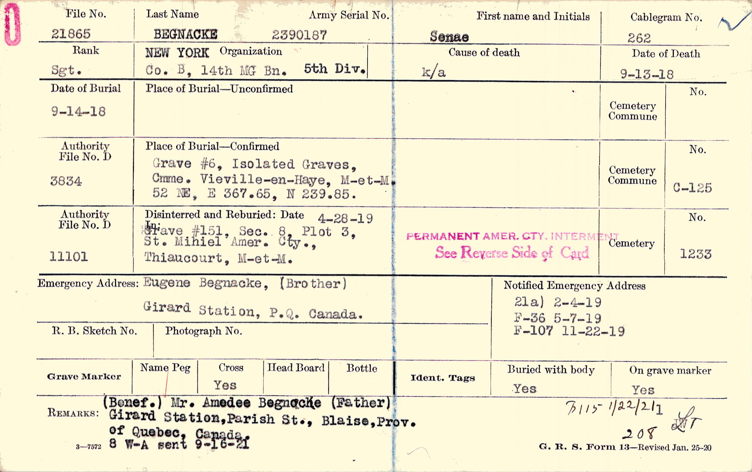 Eugene Begnacke, (Brother), Girard Station, P.Q. Canada.