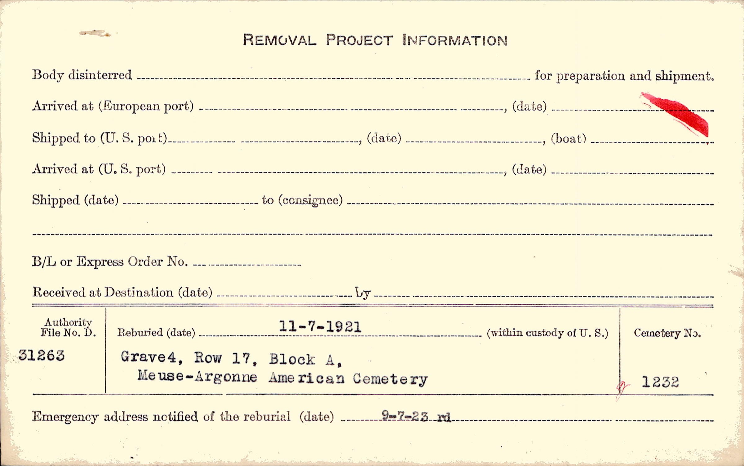 | Permanent Burial in Foreign Cemetery |