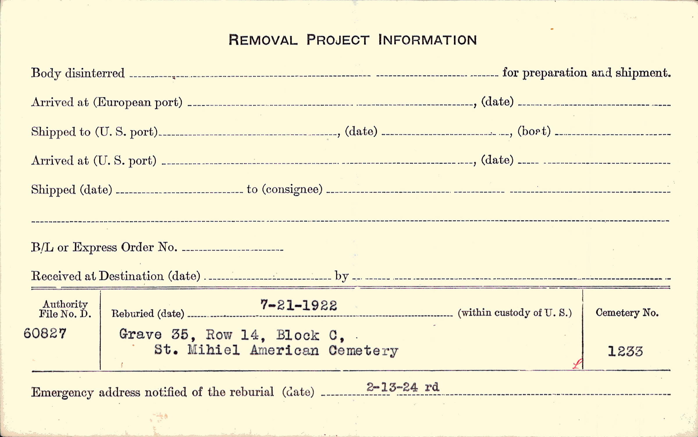 | Permanent Burial in Foreign Cemetery |