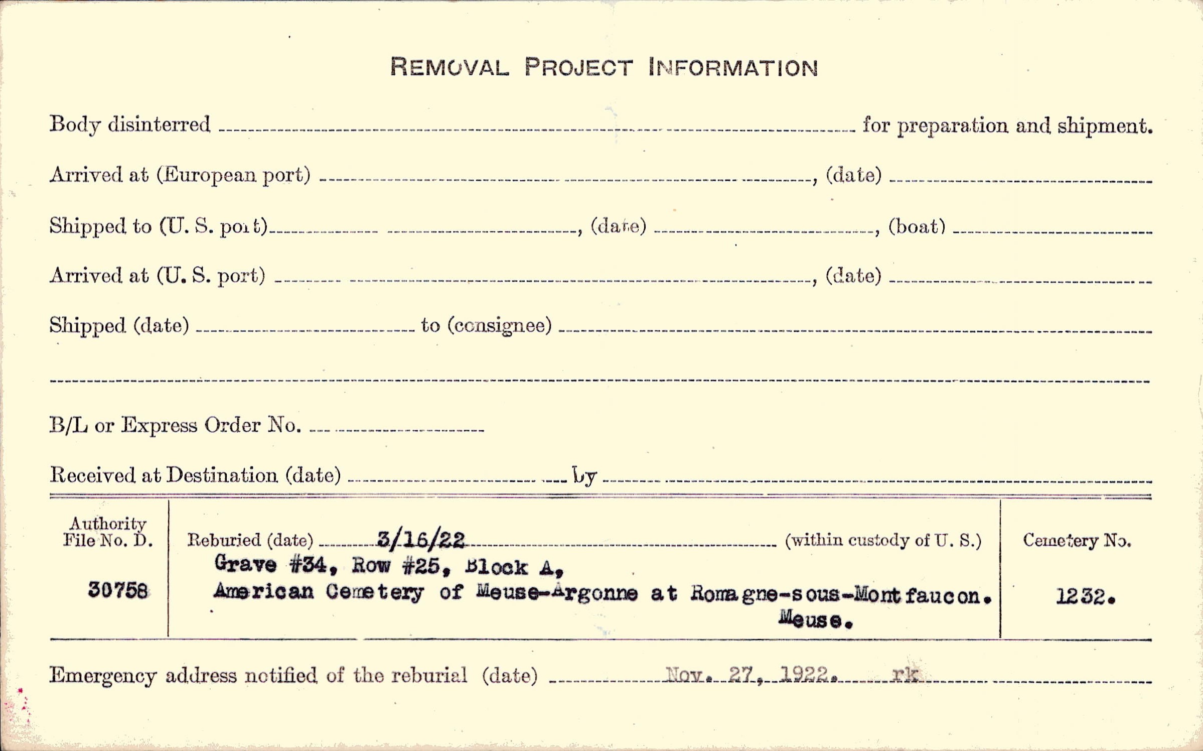 Grave 106, Section 6, Plot 3, Argonne American Cemetery, Romagne-sous-Montfaucon, Meuse