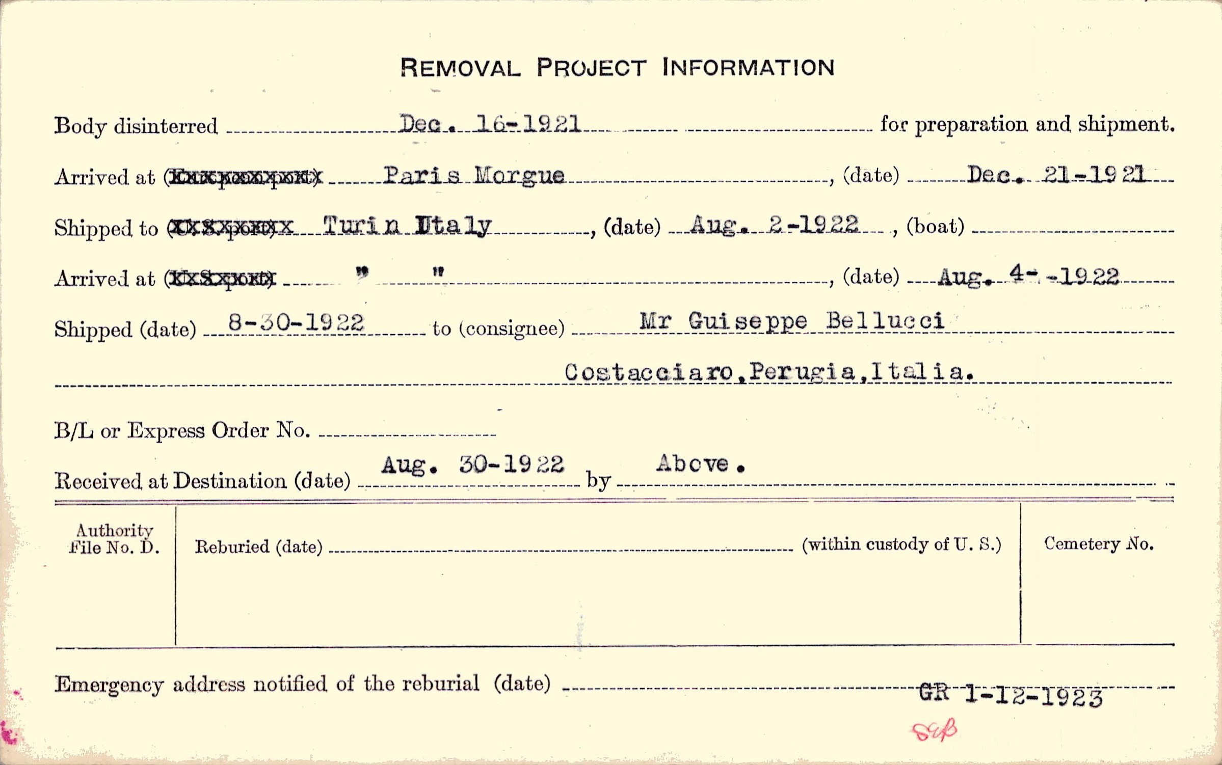 Guiseppe Bellucci (Father), Costacciaro, Perugia, Italy, (beneficiary)