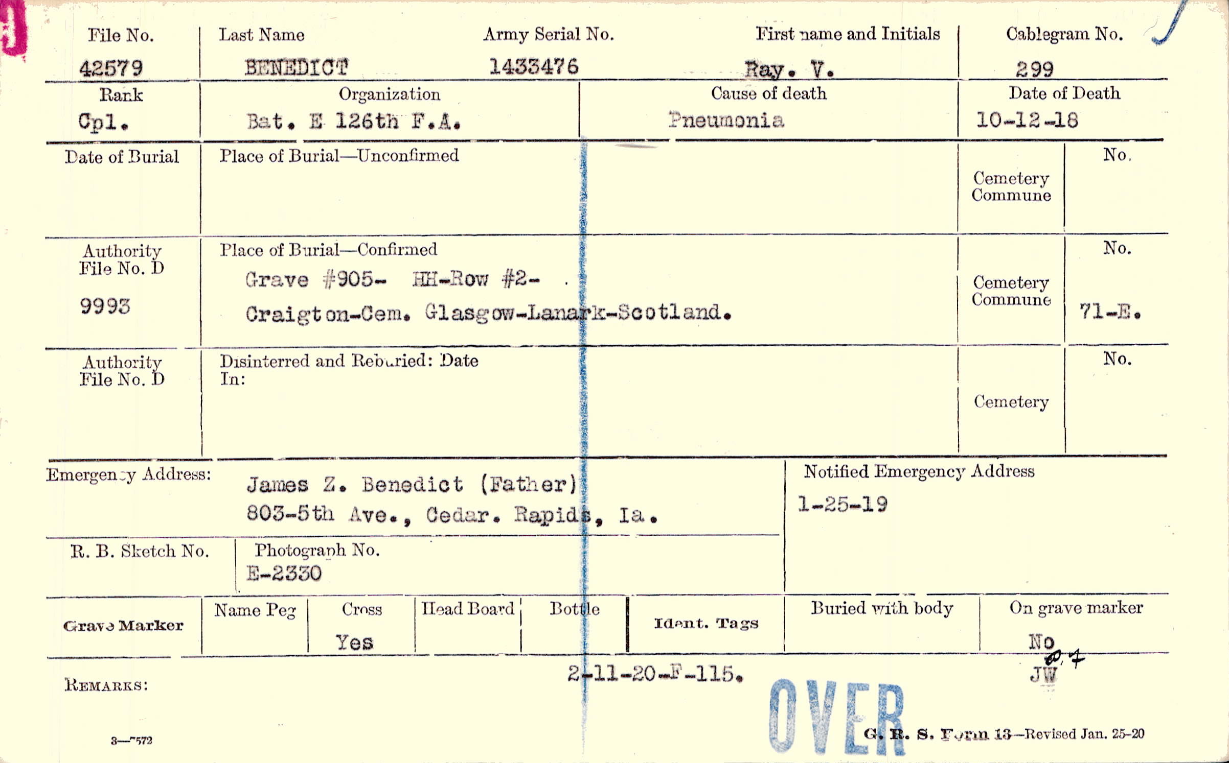 James Z. Benedict (Father), 803-5th Ave., Cedar. Rapids, Ia.