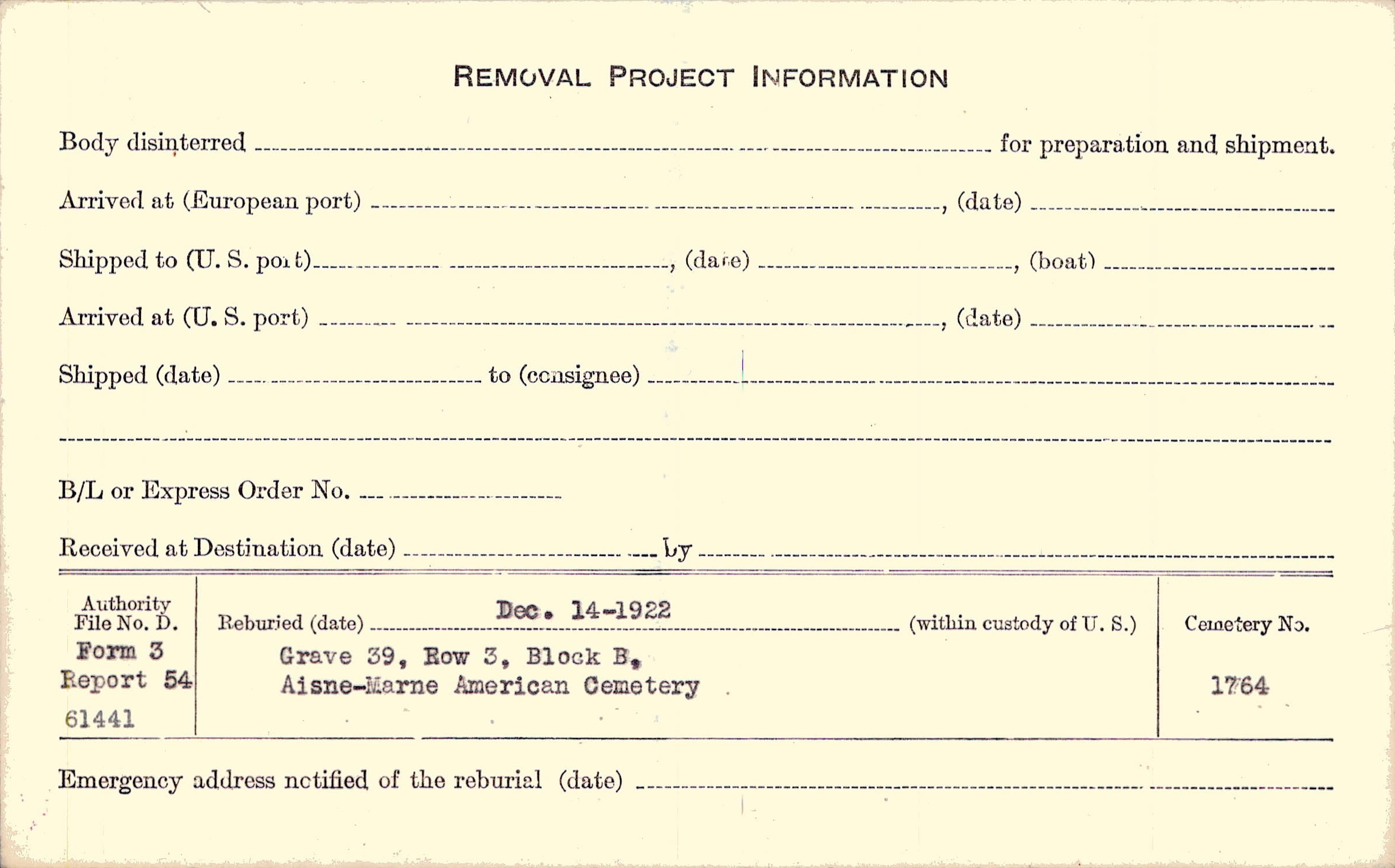 | Permanent Burial in Foreign Cemetery |