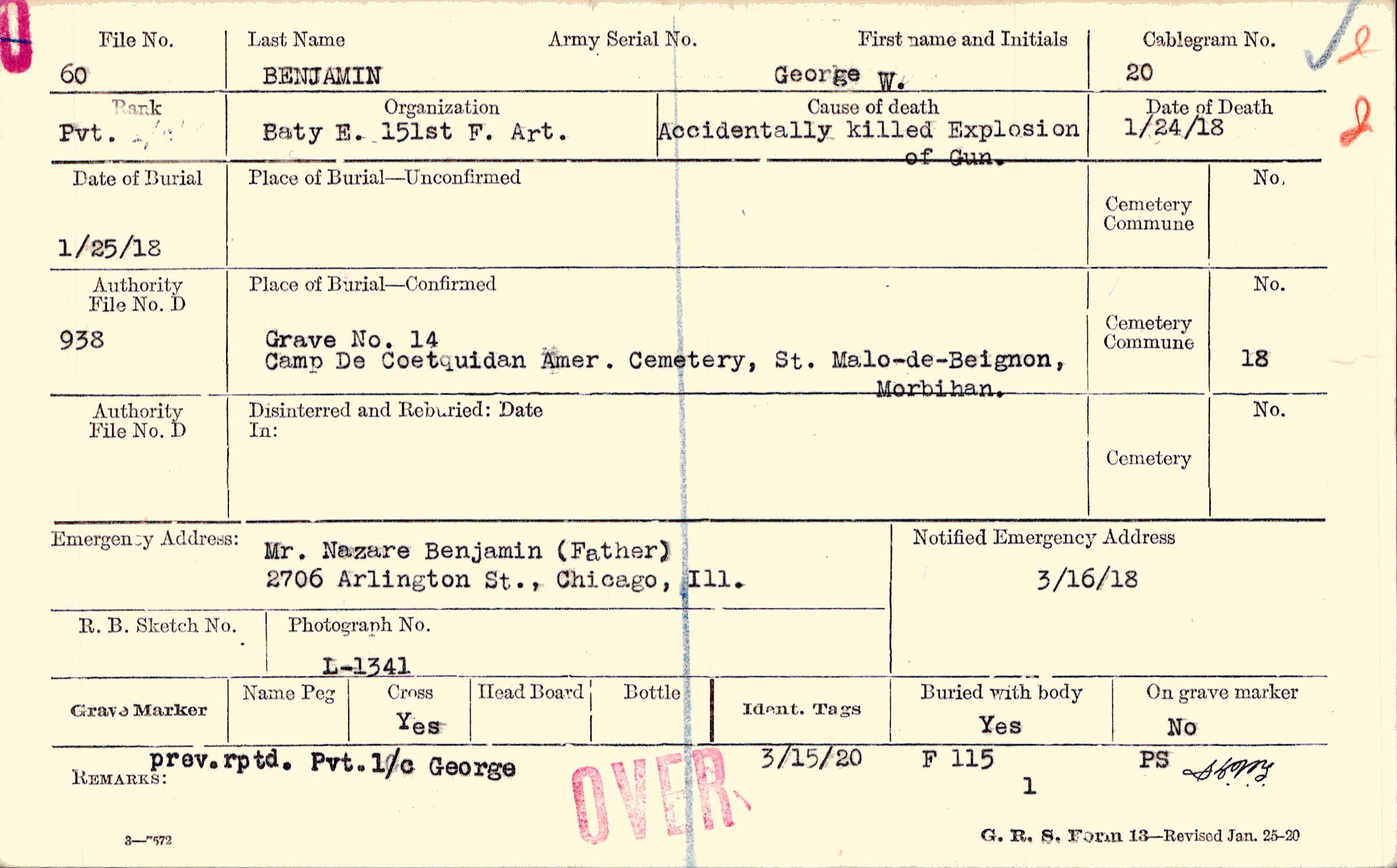 | Emergency address notified on 4/25/1922 |