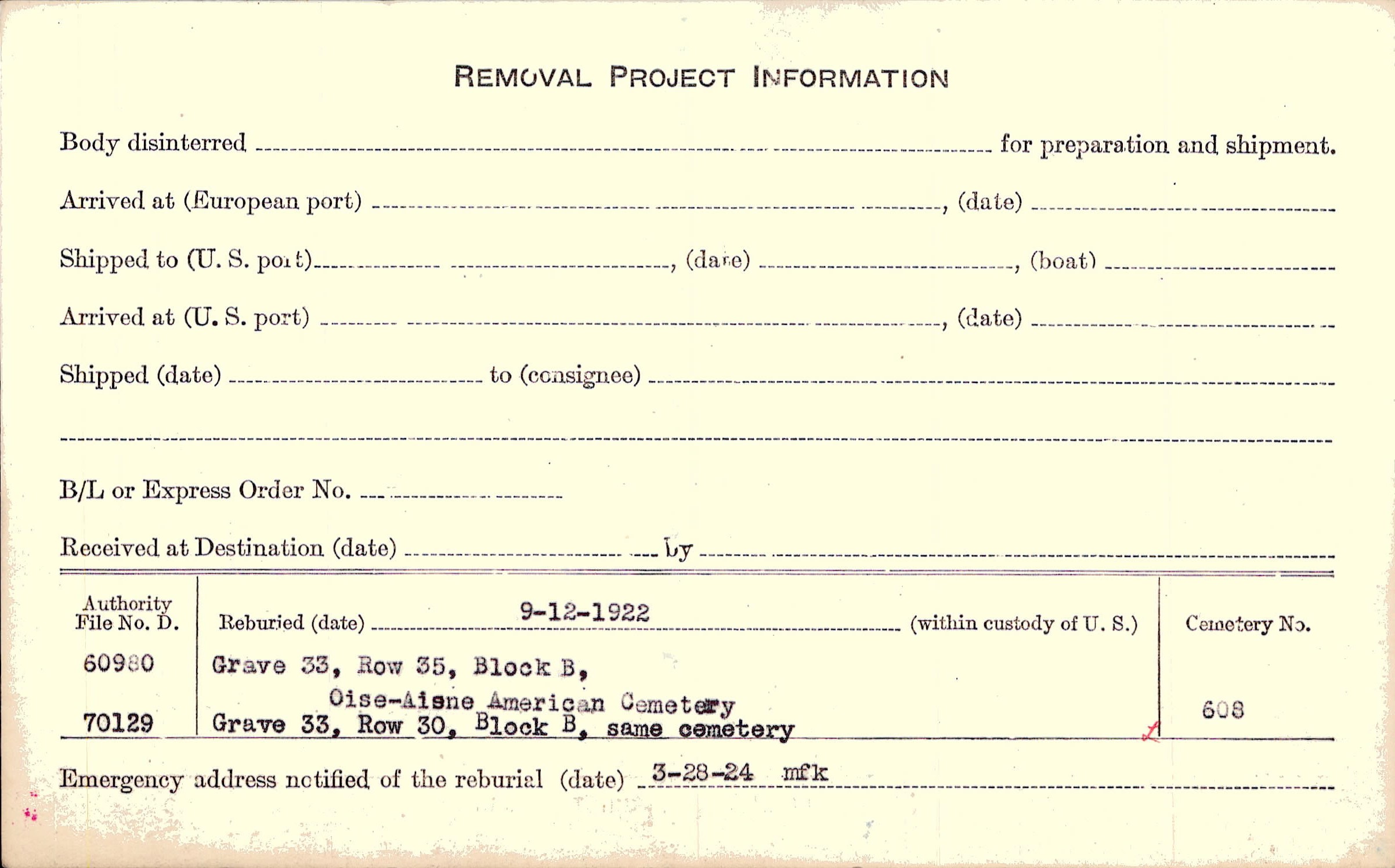Prior Burial in Foreign Cemetery |