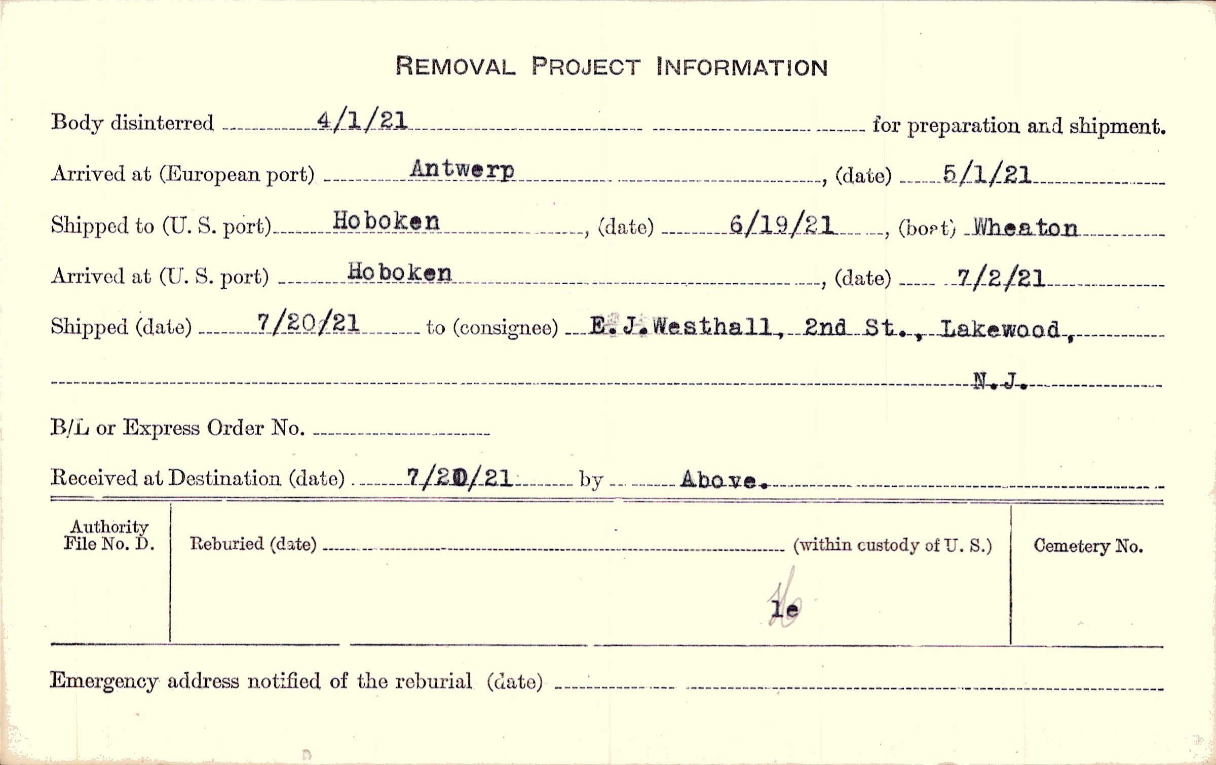 to E. J. Westhall, 2nd St., Lakewood, N. J.