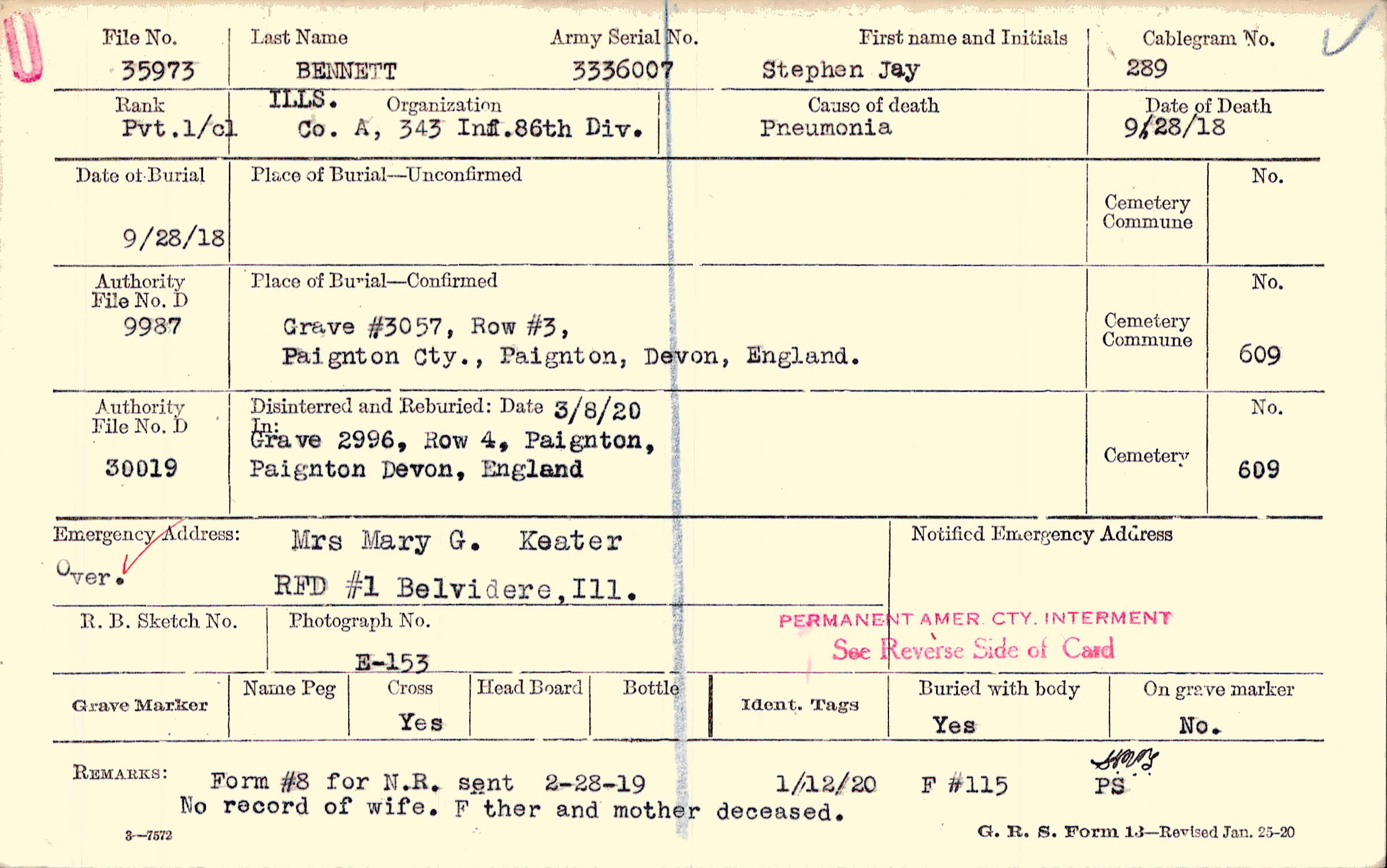 | Permanent Burial in Foreign Cemetery |