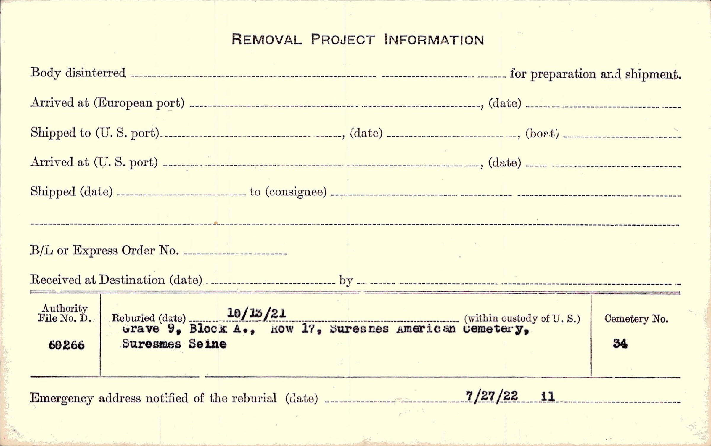 Grave 8, American Plot, Row 1, Municipal Cty, Villafranca, Verona, Italy.