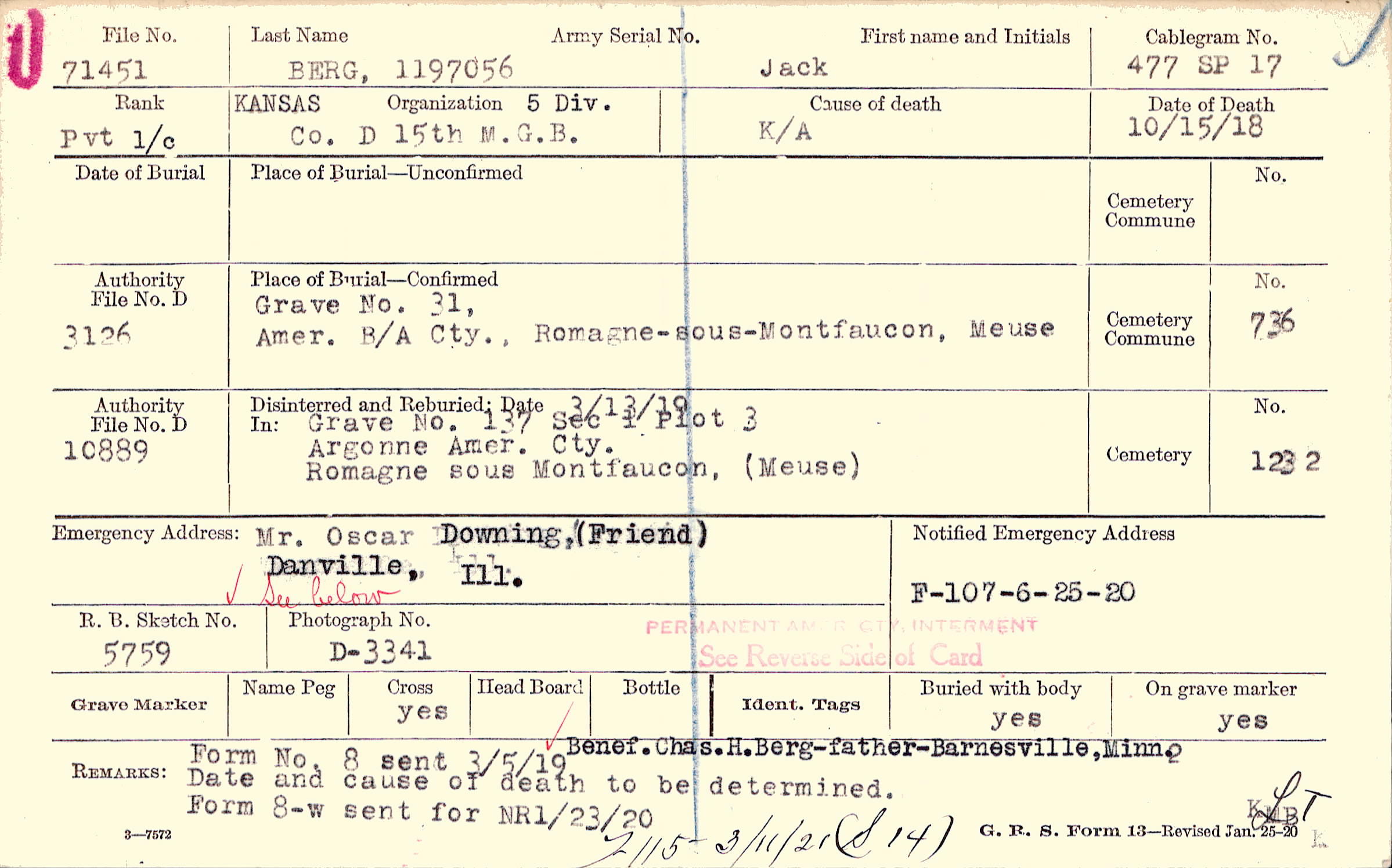 Grave 31, Amer. B/A Cty., Romagne-sous-Montfaucon, Meuse