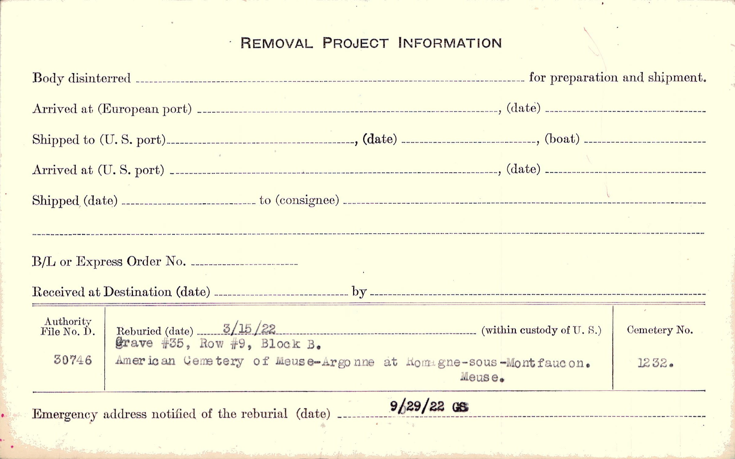 | Reburied (date): |