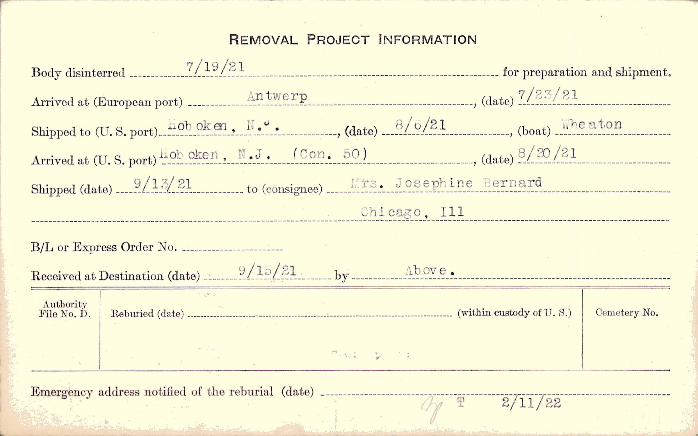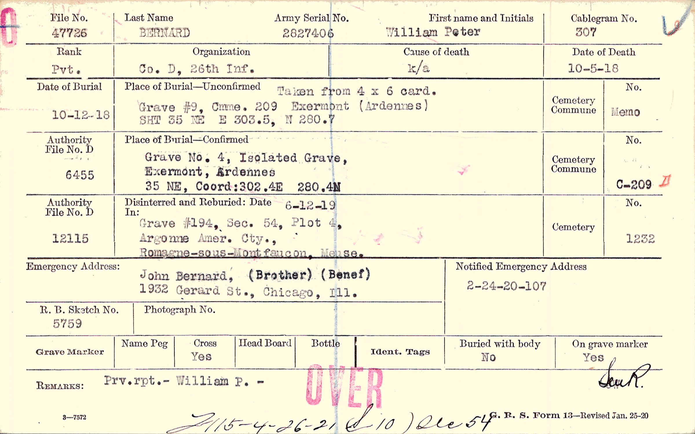 John Bernard, (Brother), 1932 Gerard St., Chicago, Ill., (Benef)
