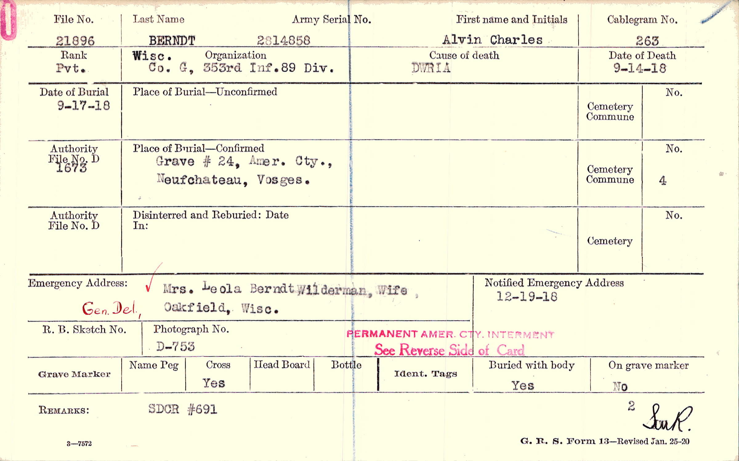 Grave #24, Amer. Cty., Neufchateau, Vosges