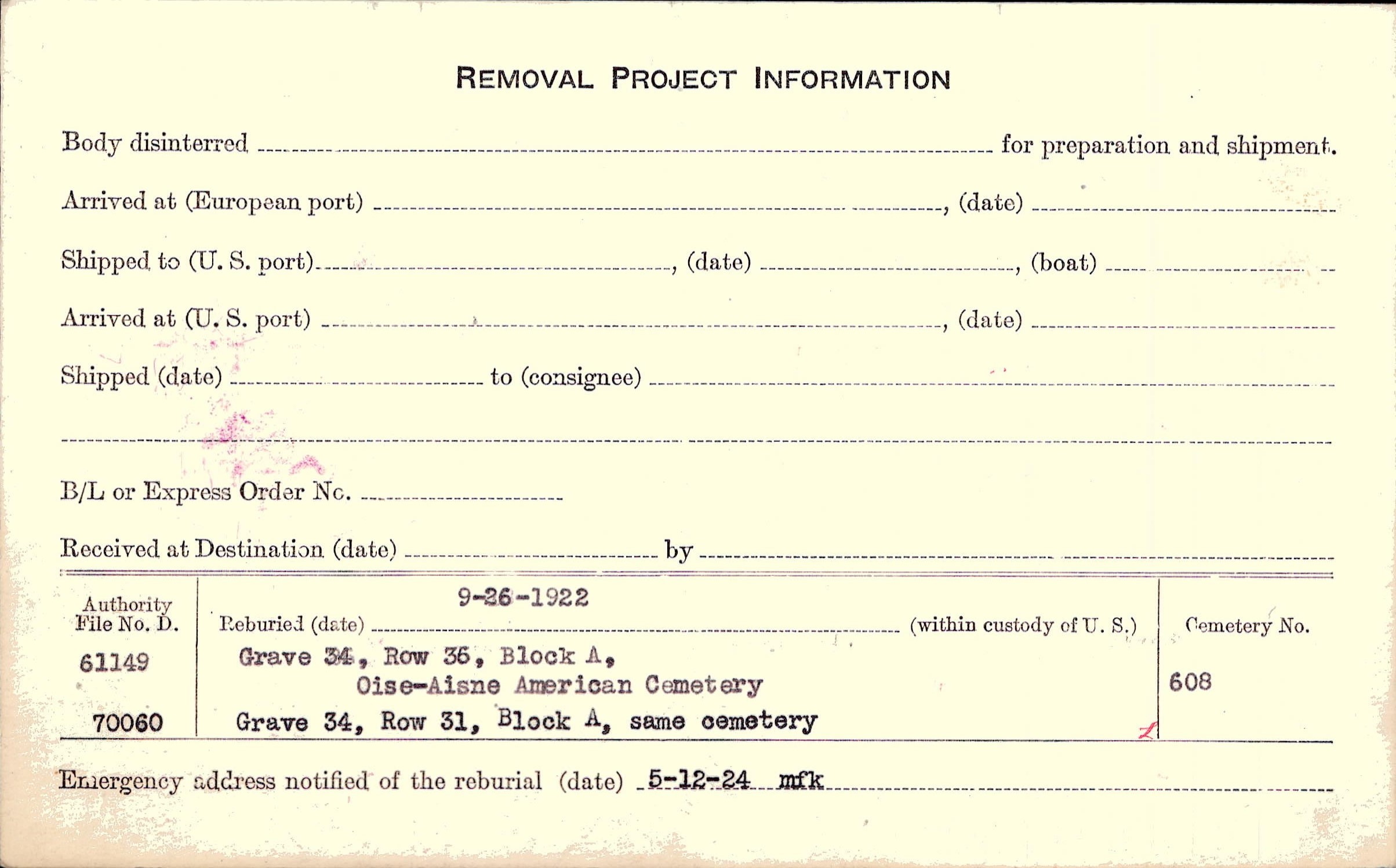 Grave 141, Amer. B/A Cty., Juvigny, Aisne