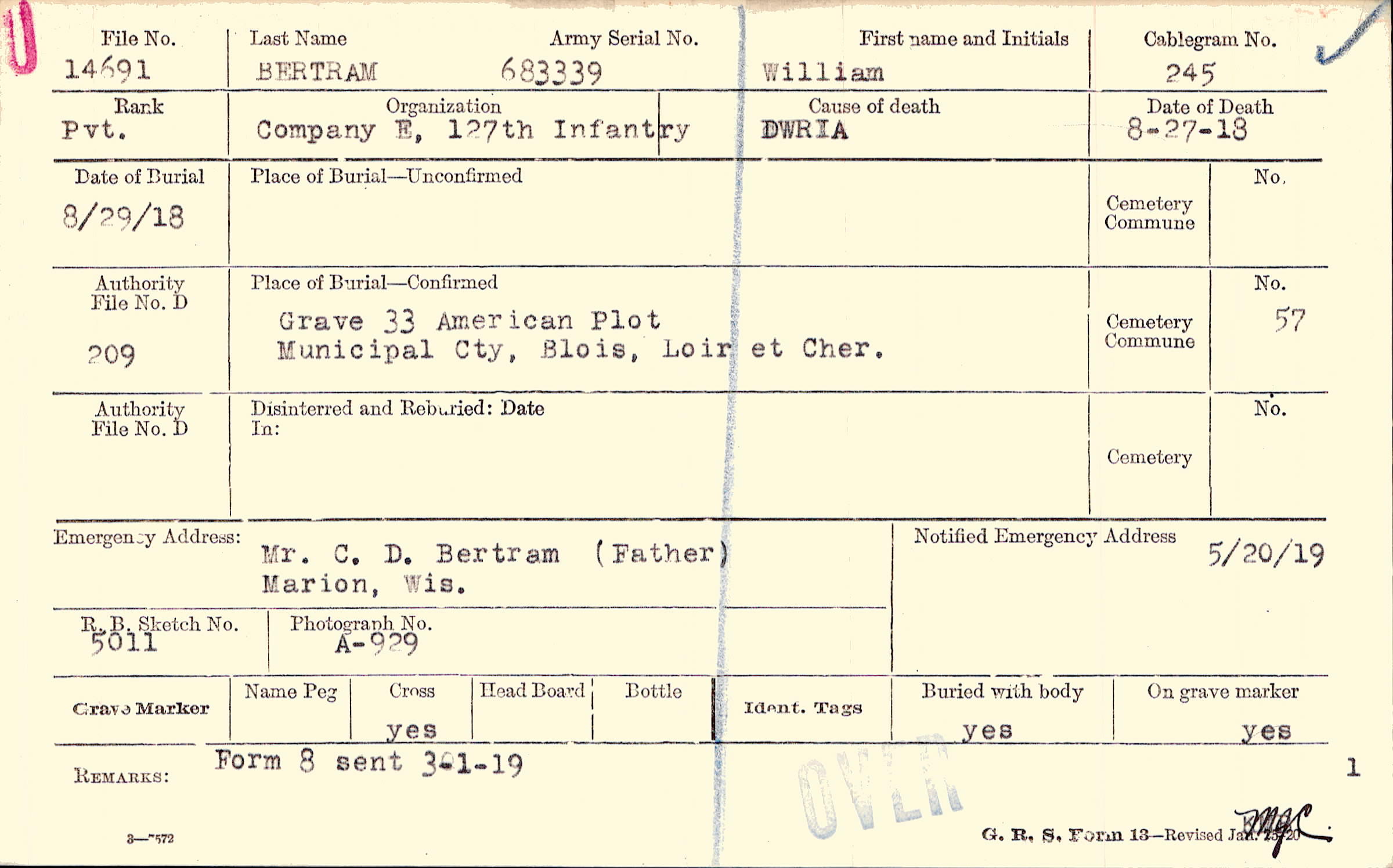 Grave 33, American Plot, Municipal Cty., Blois, Loir et Cher.