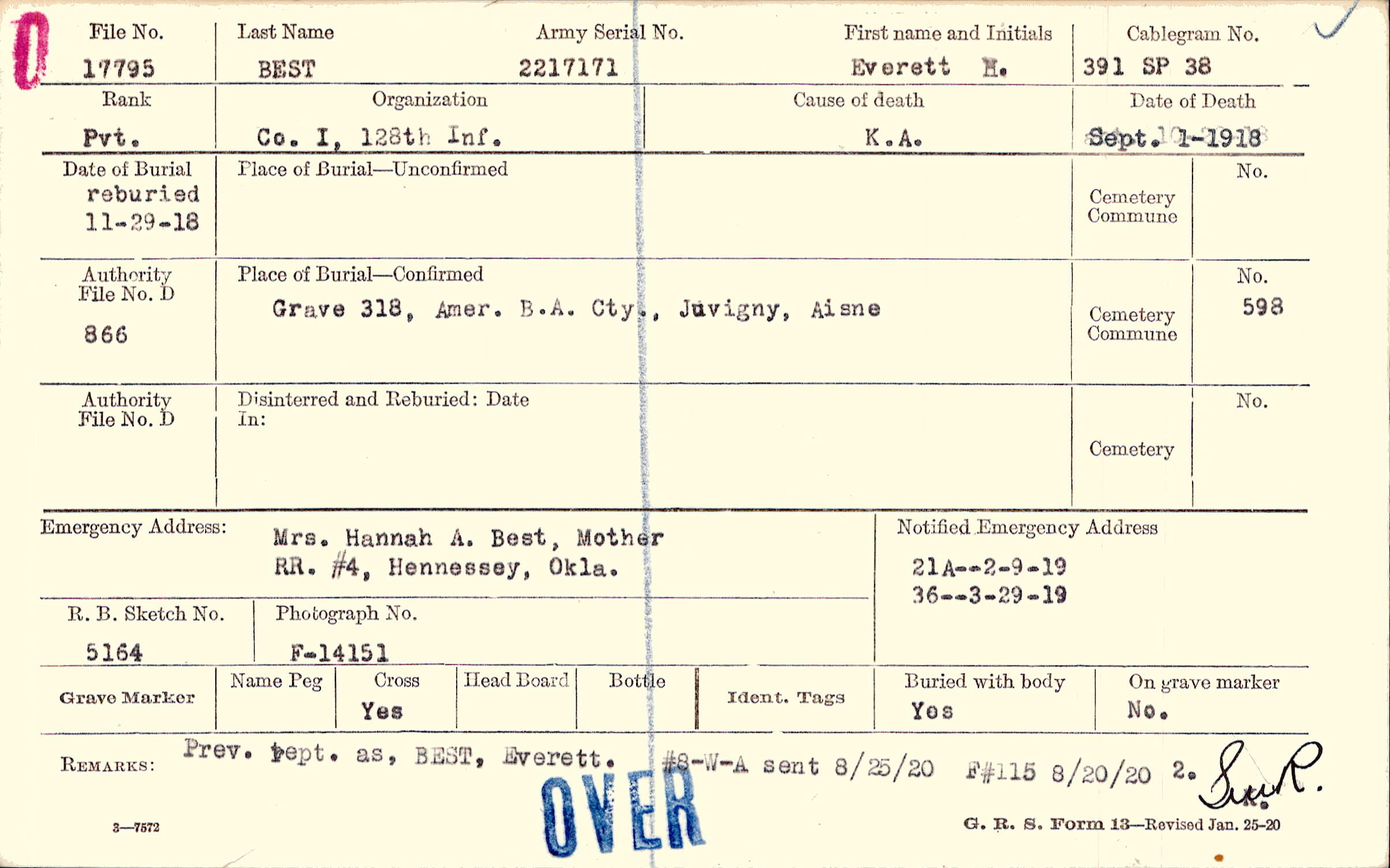 Grave 318, Amer. B/A Cty., Juvigny, Aisne