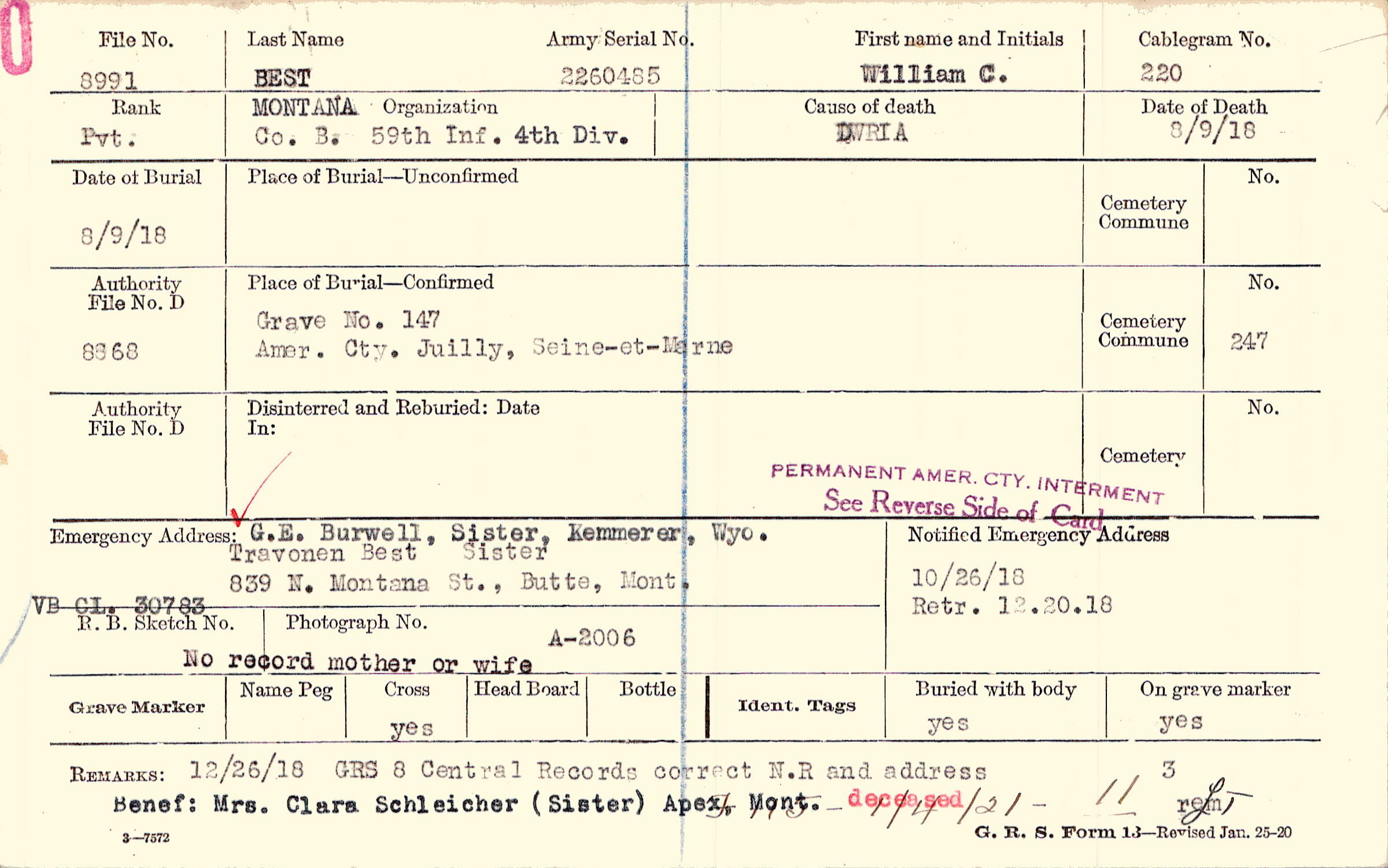 12/26/18 GRS 8 Central Records correct N.R and address, F 115 - 1/4/21 - 11