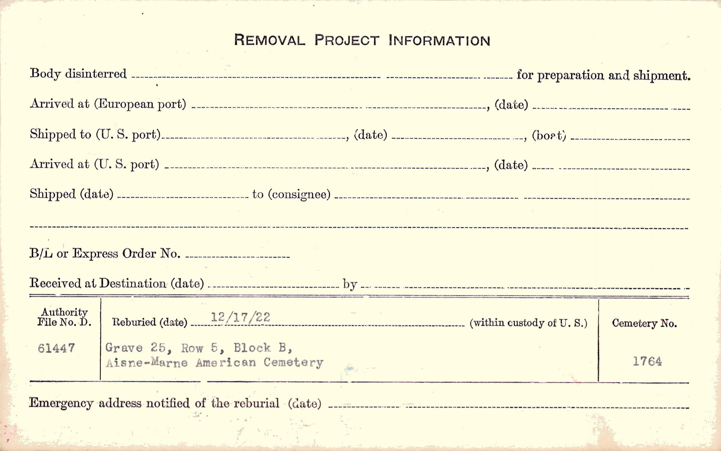 | Permanent Burial in Foreign Cemetery |