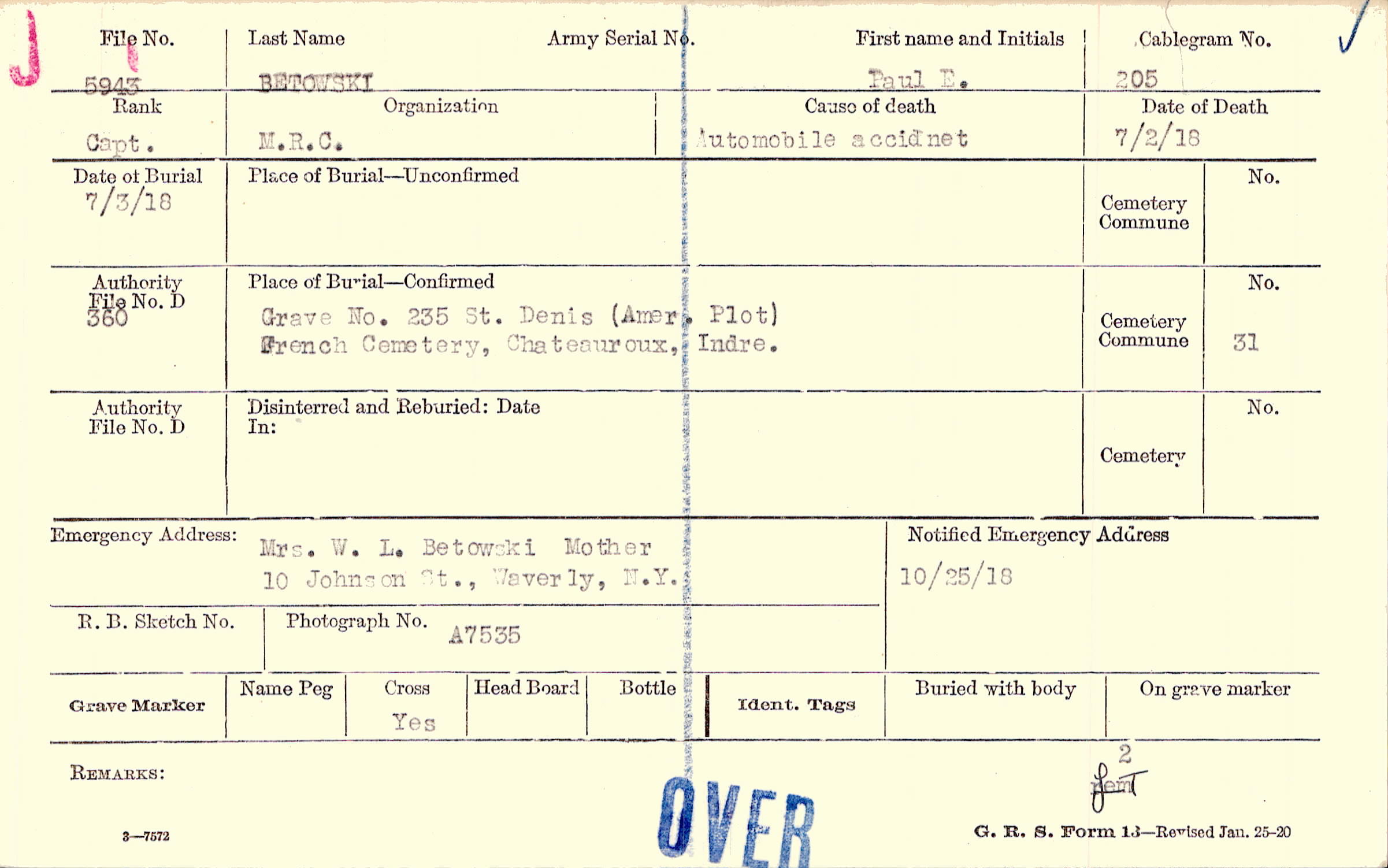 Grave 235, St. Denis, Amer. Plot, French Cemetery, Chateauroux, Indre