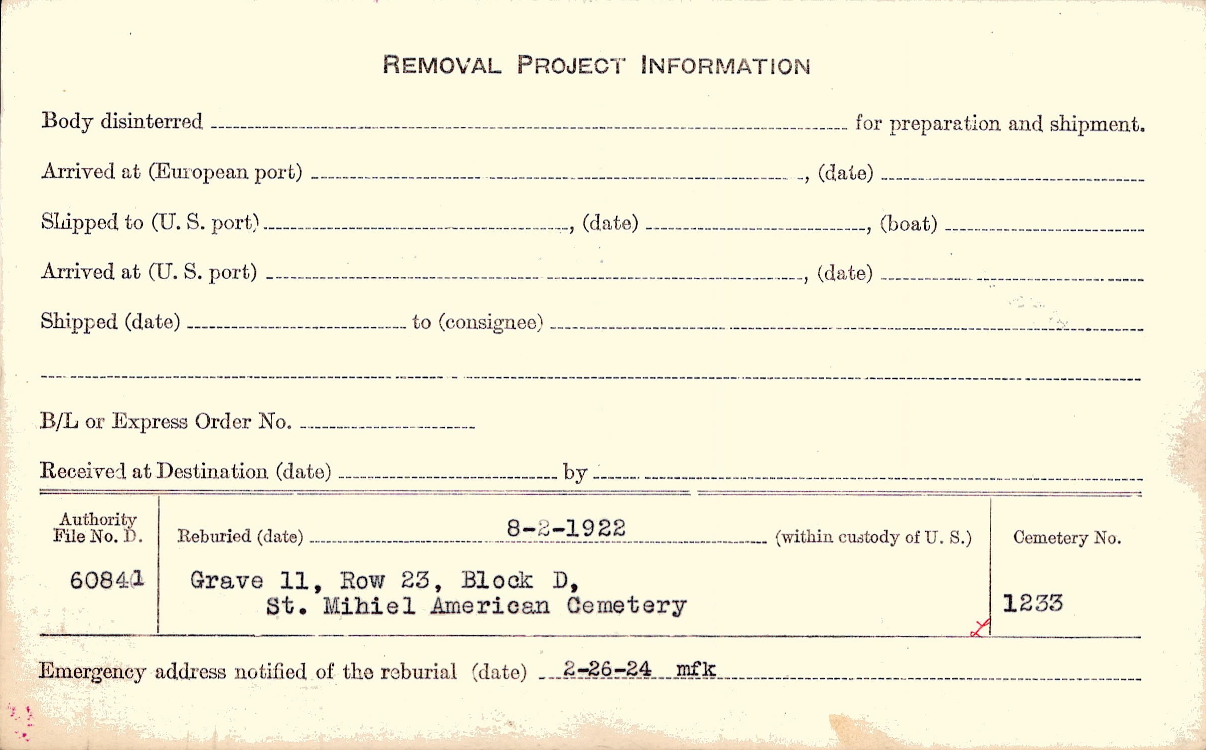 | Permanent Burial in Foreign Cemetery |