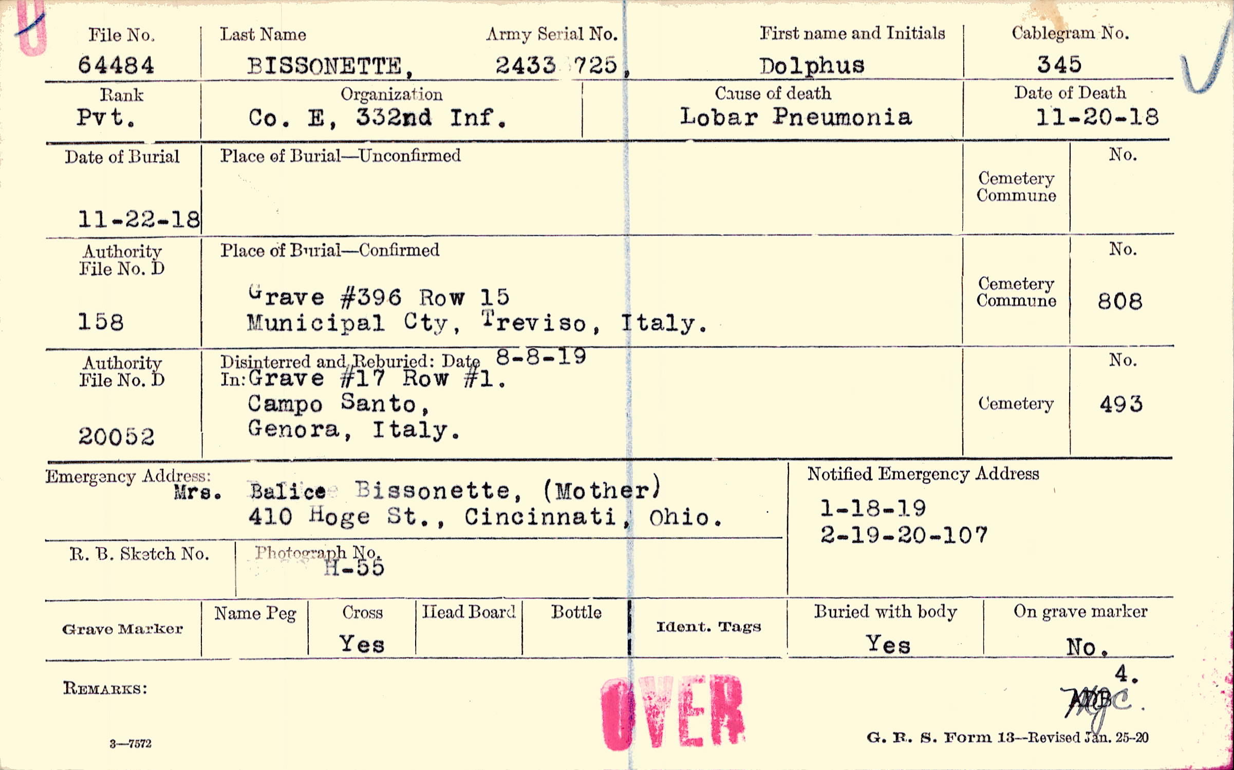 Grave #396, Row 15, Municipal Cty., Treviso, Italy