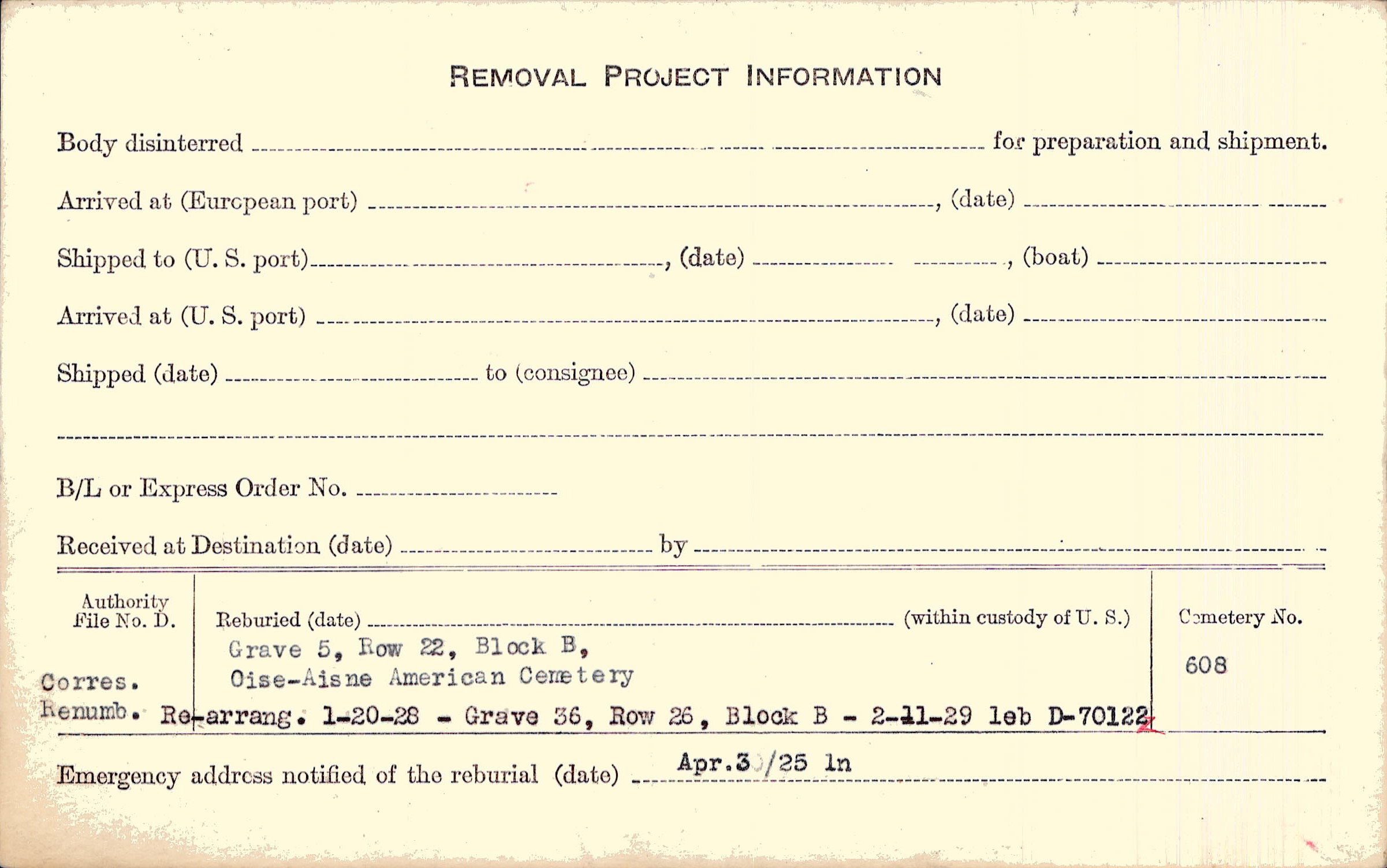 Prior Burial in Foreign Cemetery |