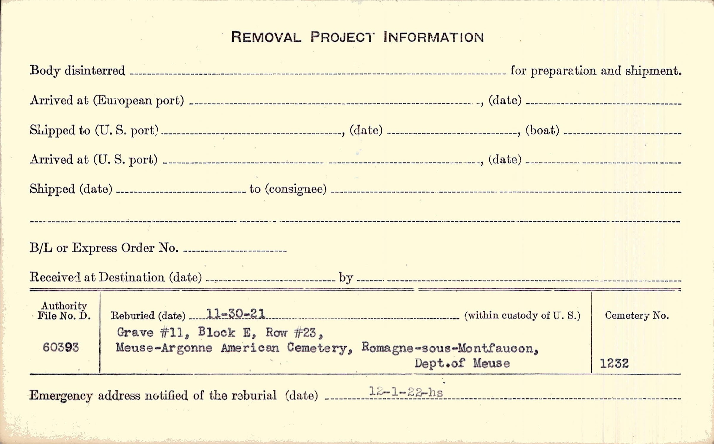 | Permanent Burial in Foreign Cemetery |