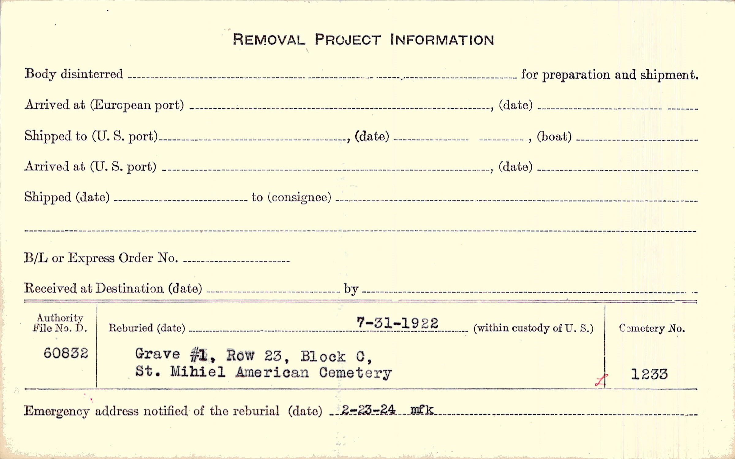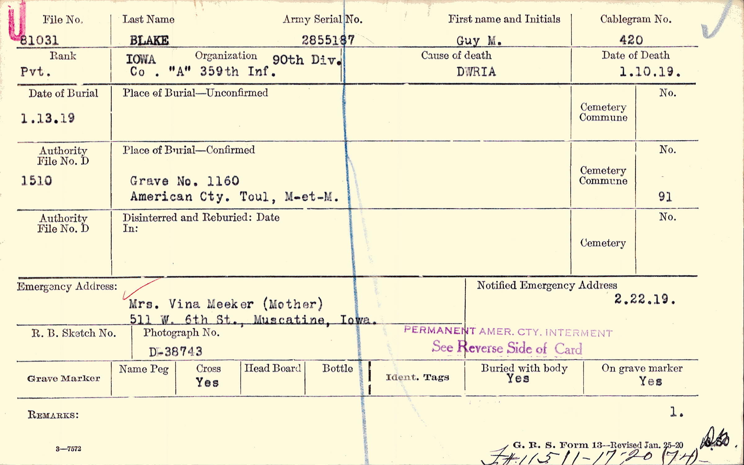 Grave 1160, American Cty., Toul, M-et-M.