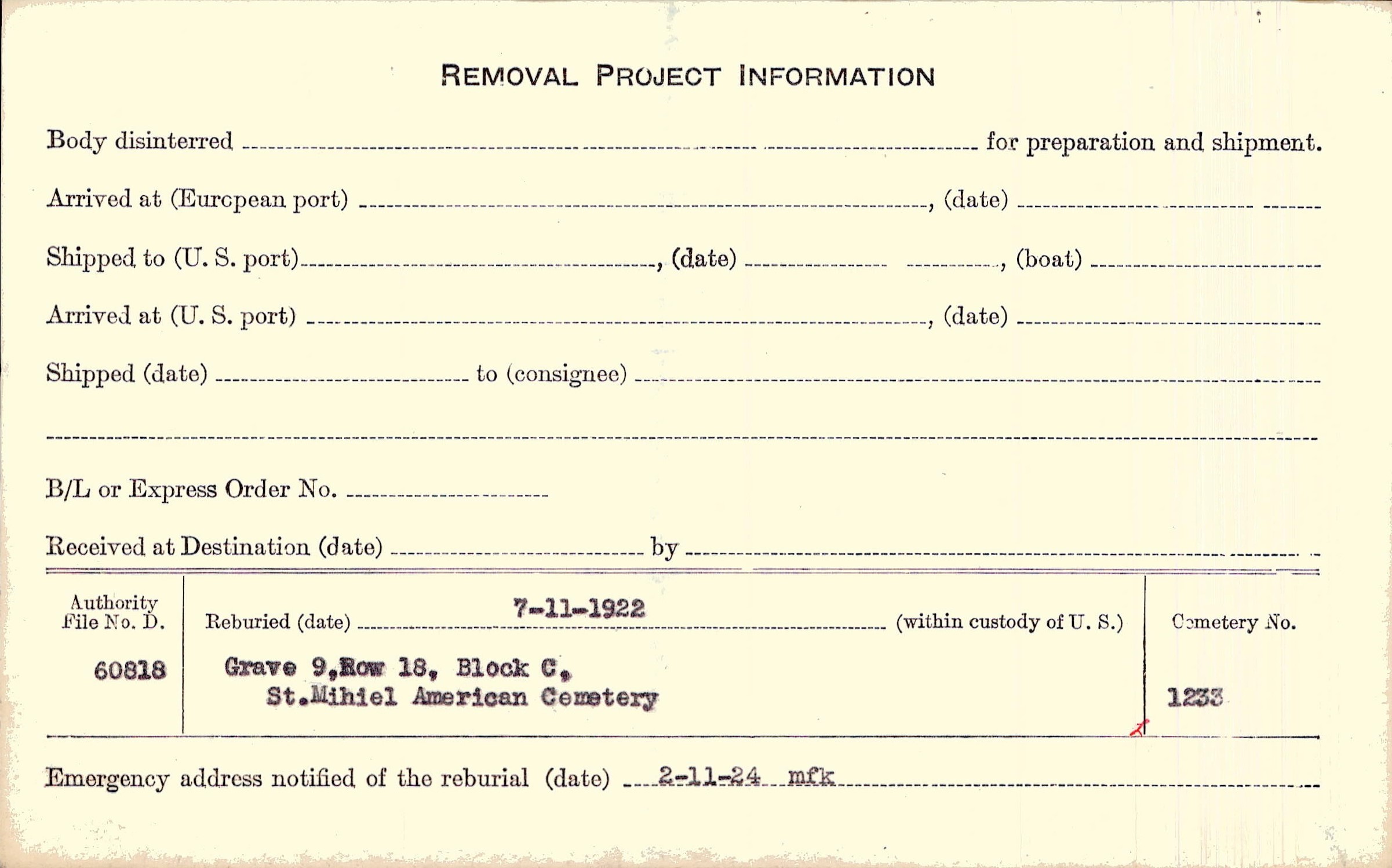 | Permanent Burial in Foreign Cemetery |
