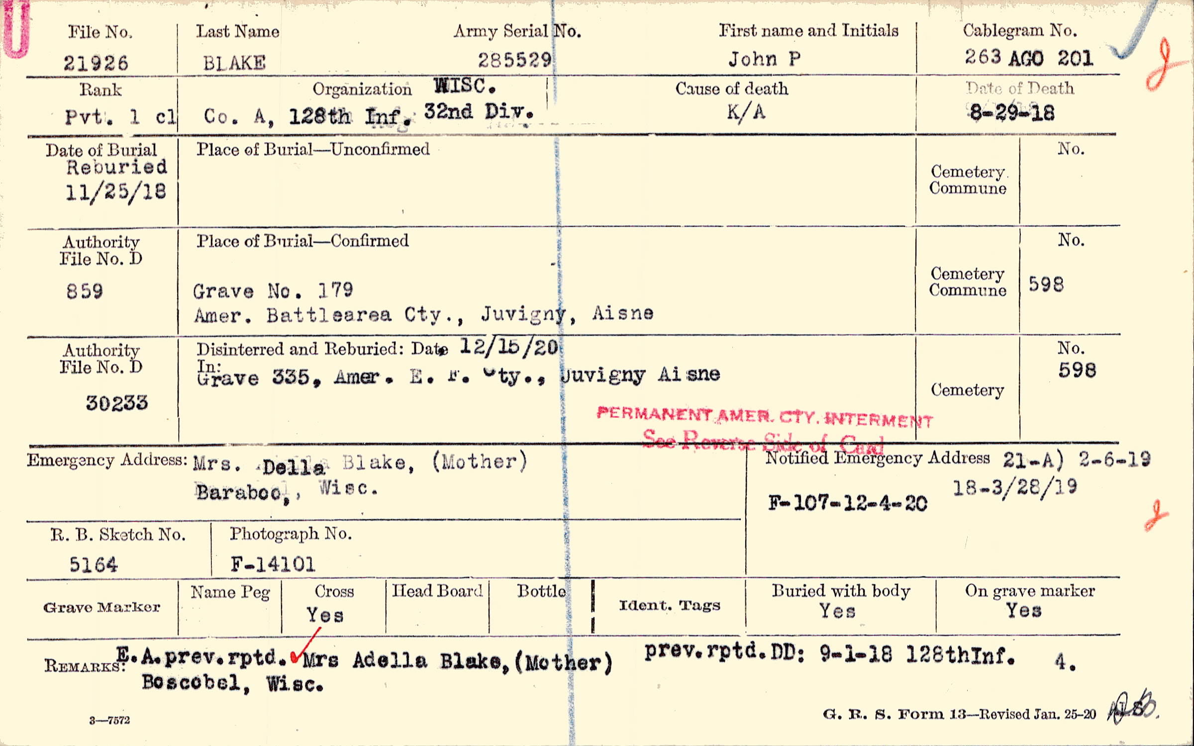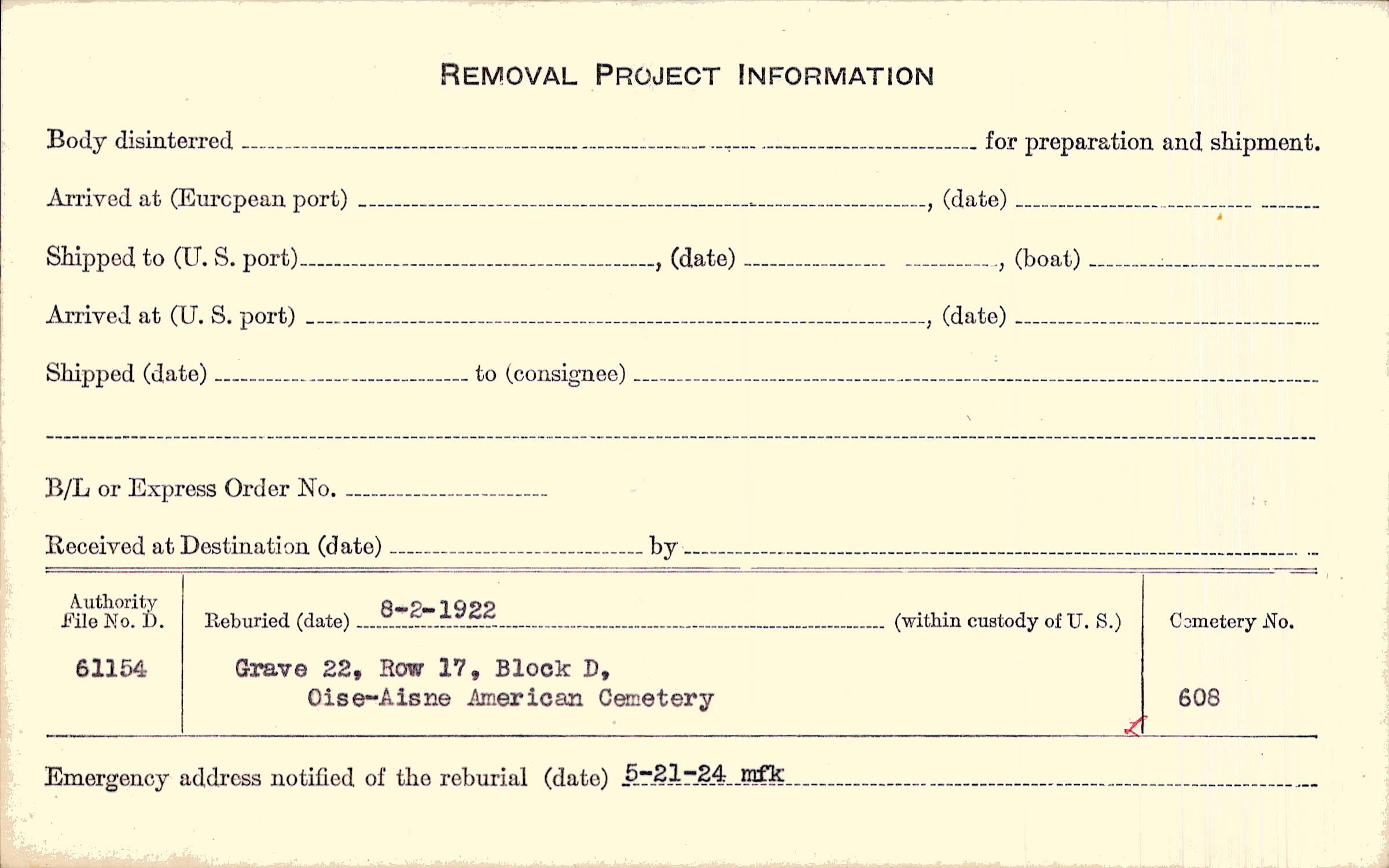 Grave 179, Amer. Battlearea Cty., Juvigny, Aisne