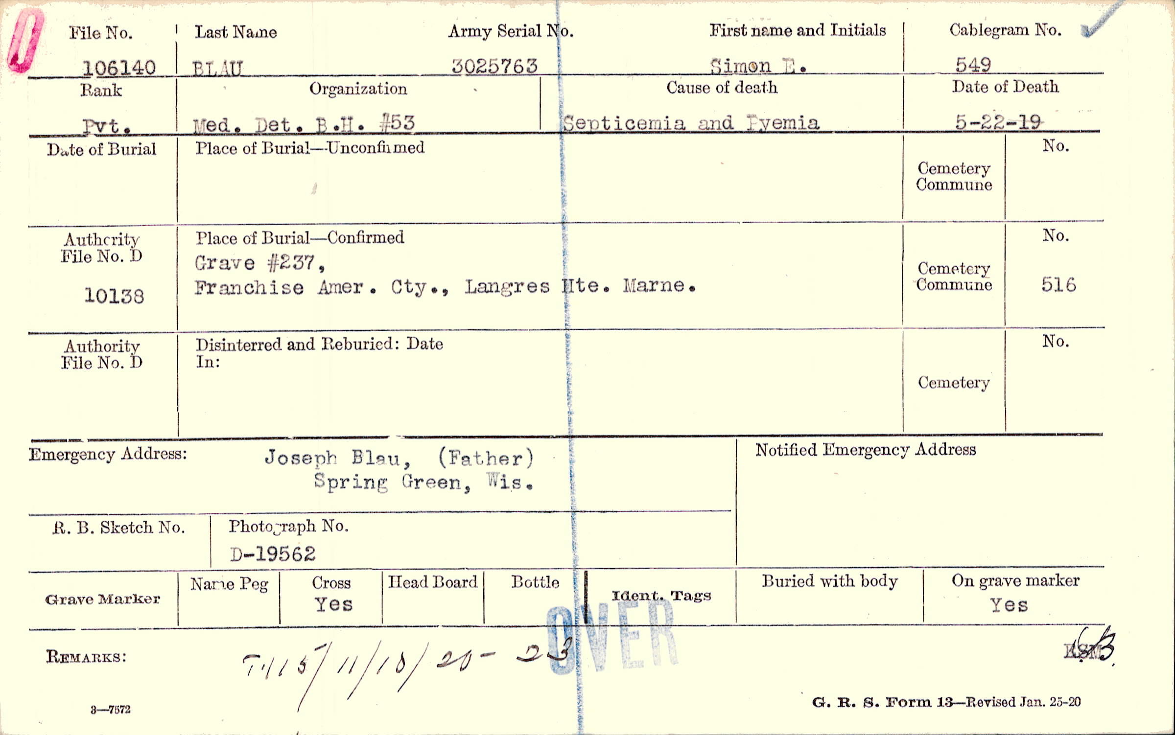 Grave #237, Franchise Amer. Cty., Langres, Hte. Marne.