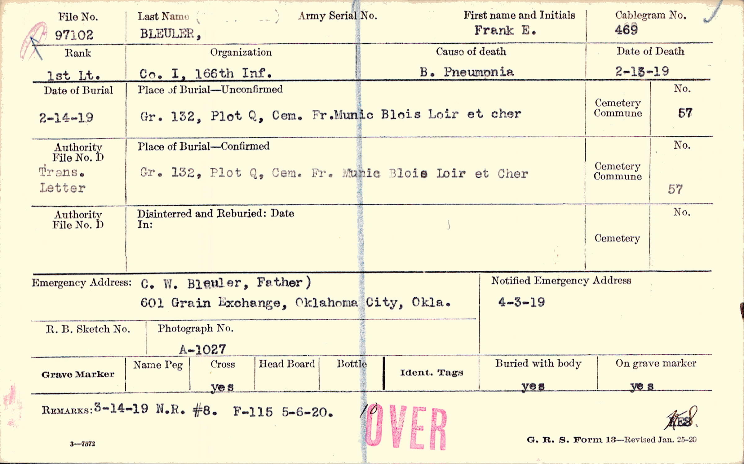 Gr. 132, Plot Q, Cem. Fr. Munic Blois Loir et Cher
