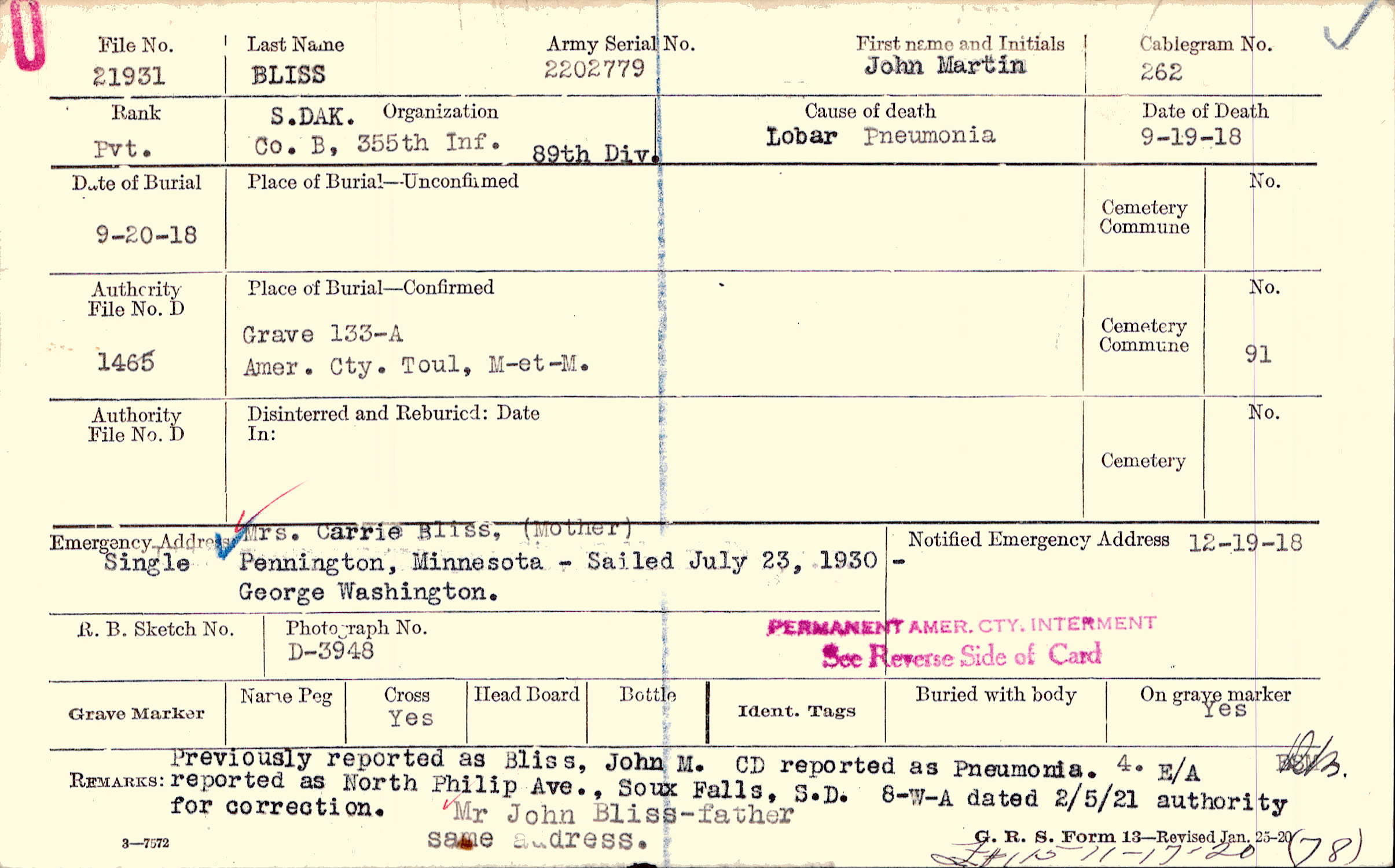 Grave 133-A, Amer. Cty., Toul, M-et-M.