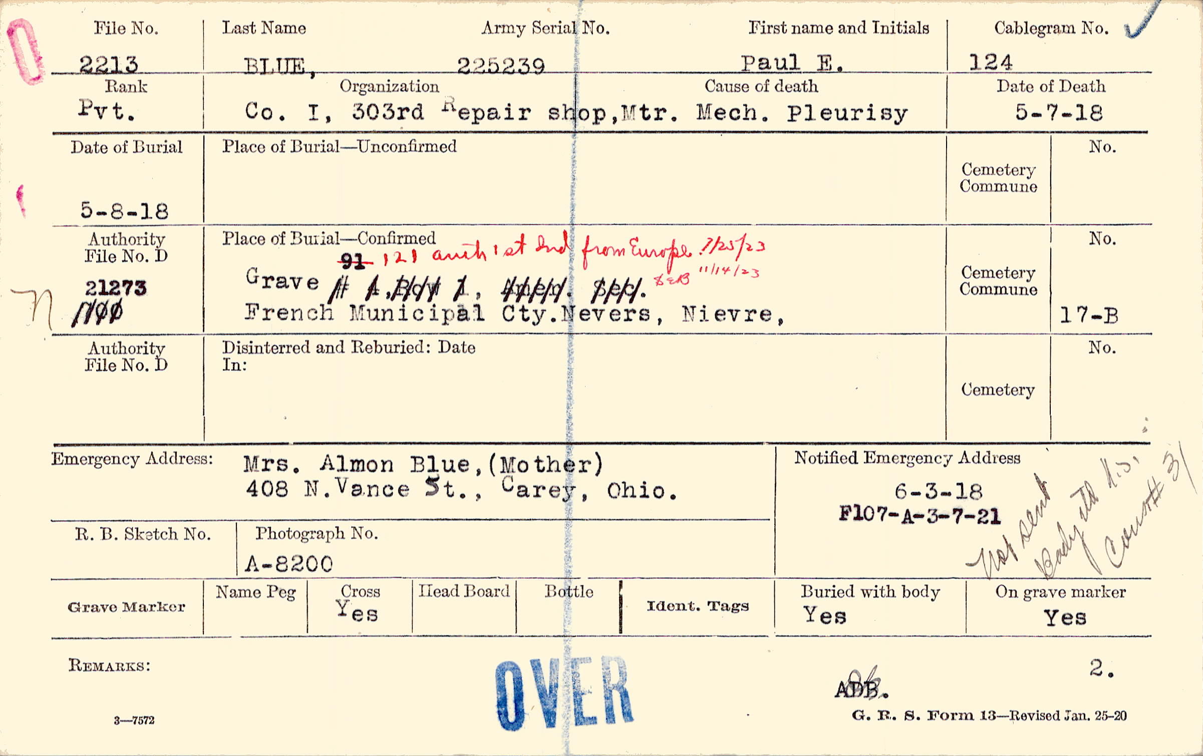 6/3/1918, Form 107: A 3/7/19 Form 21: , Not sent Body rtd U S (Course#3)