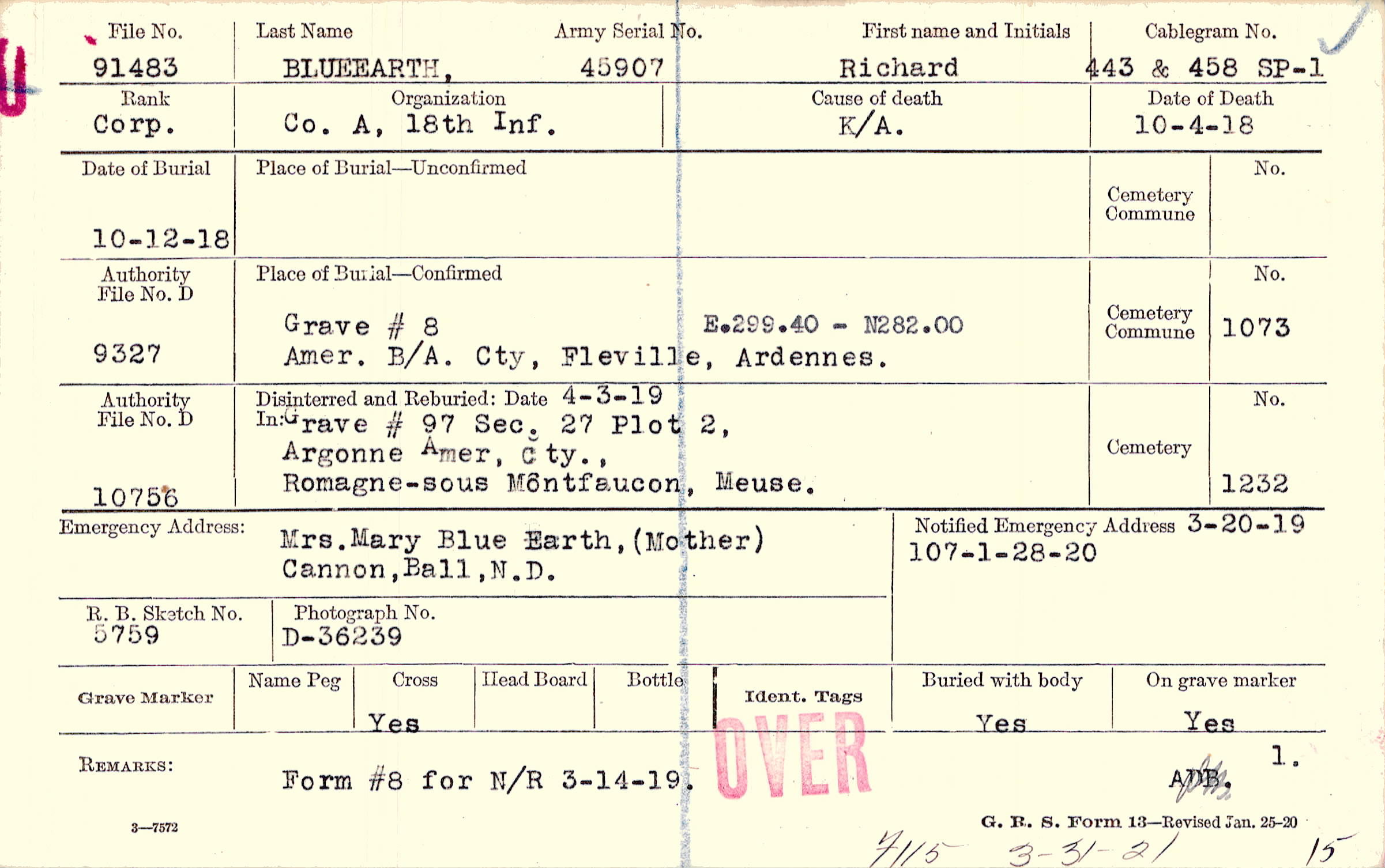 Grave # 8, Amer. B/A. Cty, Fleville, Ardennes.