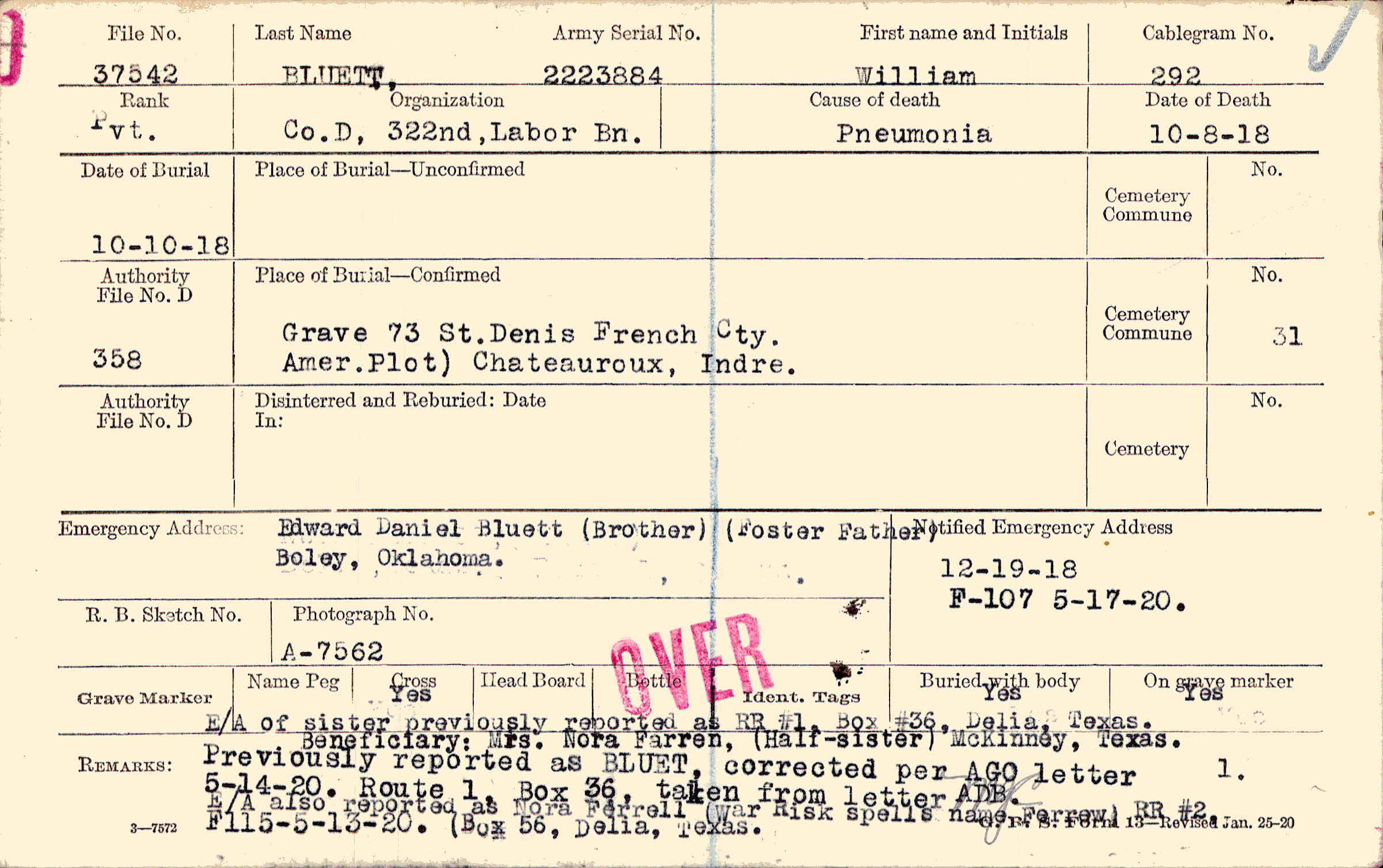 Grave 73, St. Denis French Cty., Amer Plot), Chateauroux, Indre.