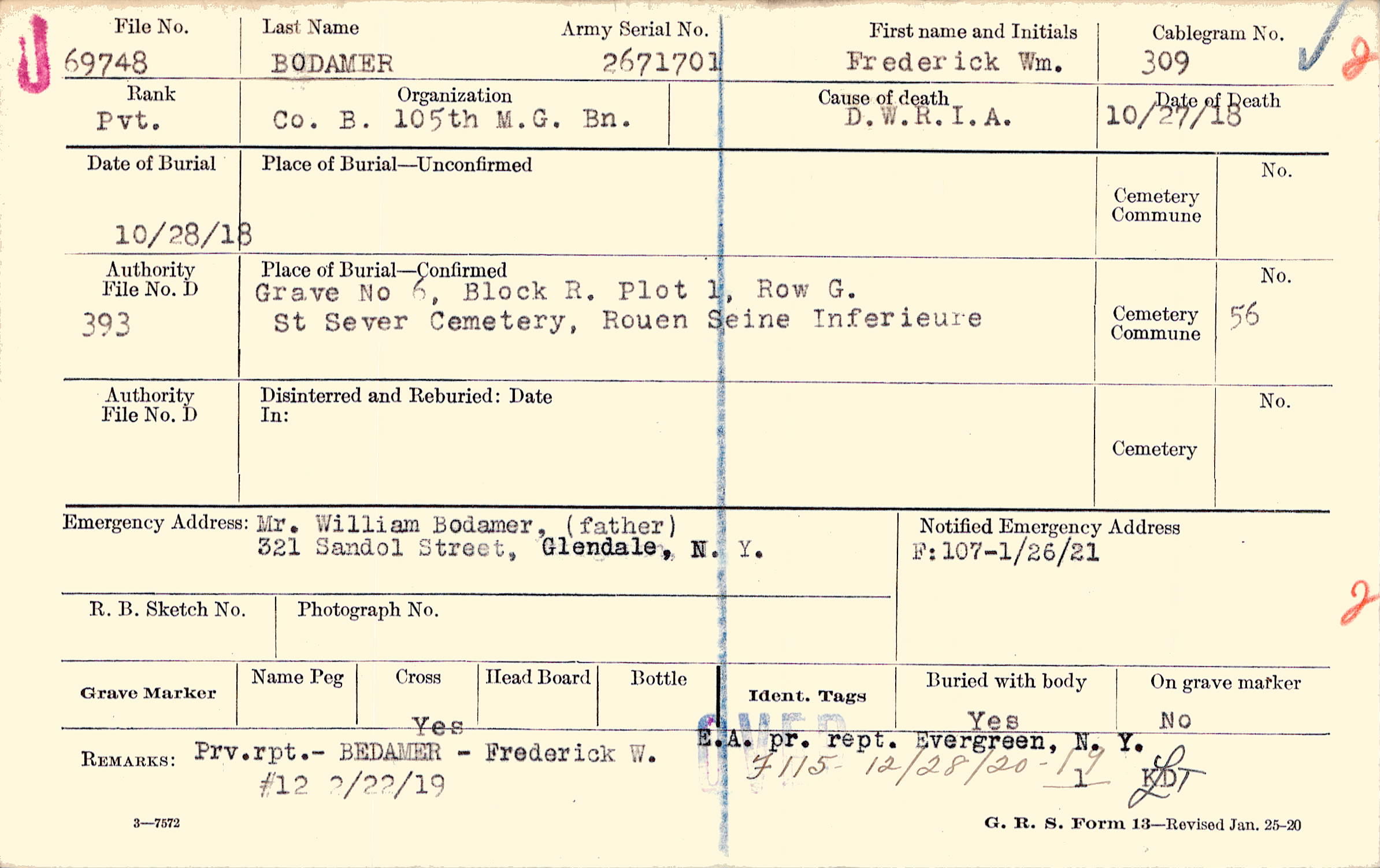 Mr. William Bodamer, (father), 321 Sandol Street, Glendale, N. Y.