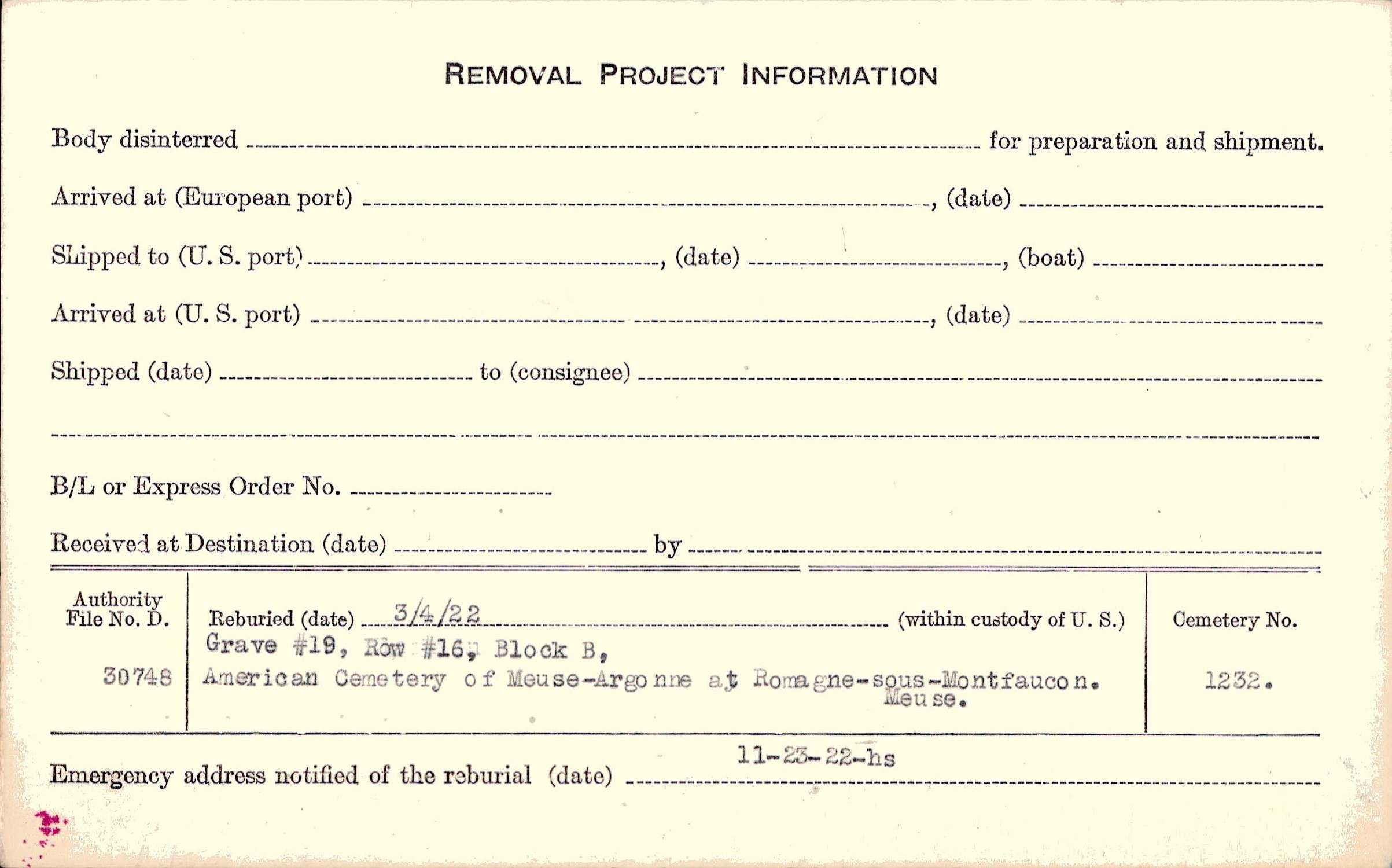 | Reburied (date): |