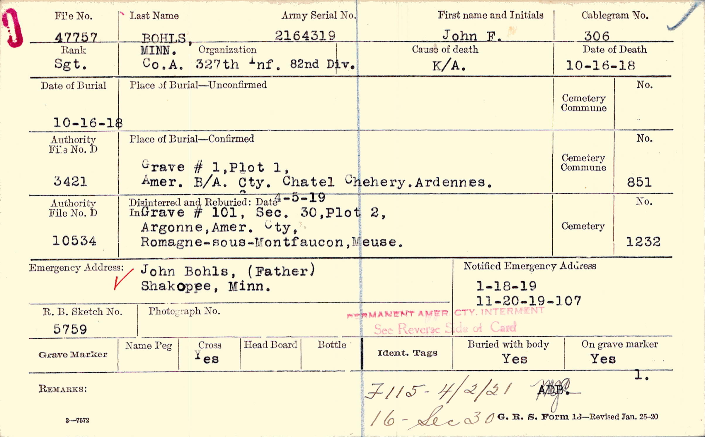 1/18/1919, Form 107: 11/20/1919