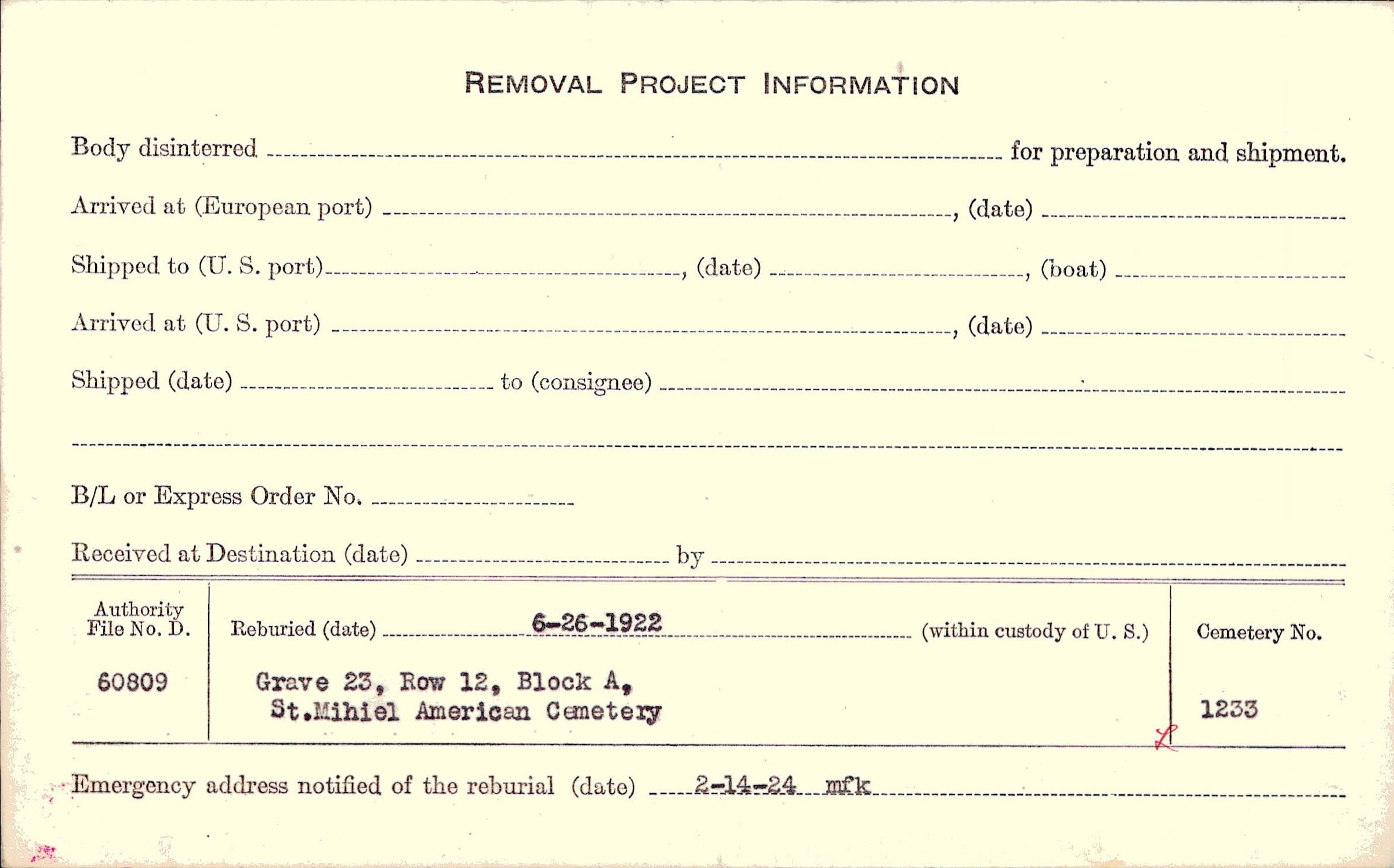 | Permanent Burial in Foreign Cemetery |