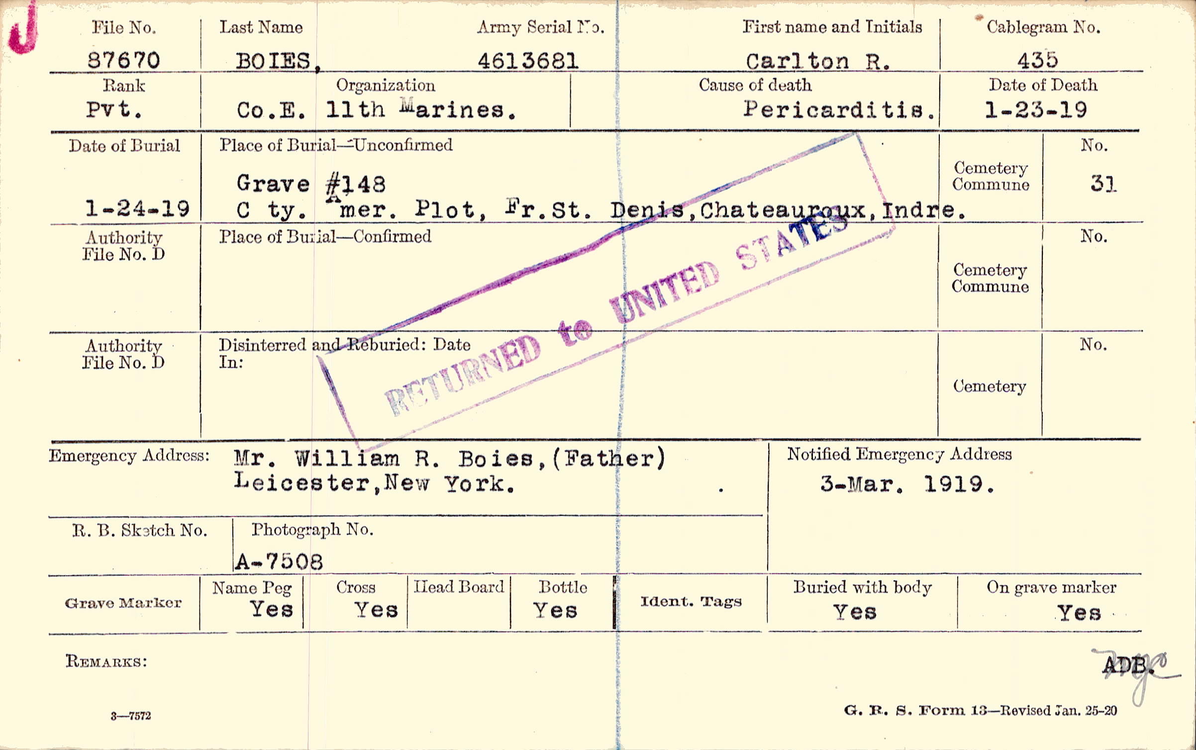 Grave #148, C ty., Amer., Plot, Fr., St Denis, Chateauroux, Indre.