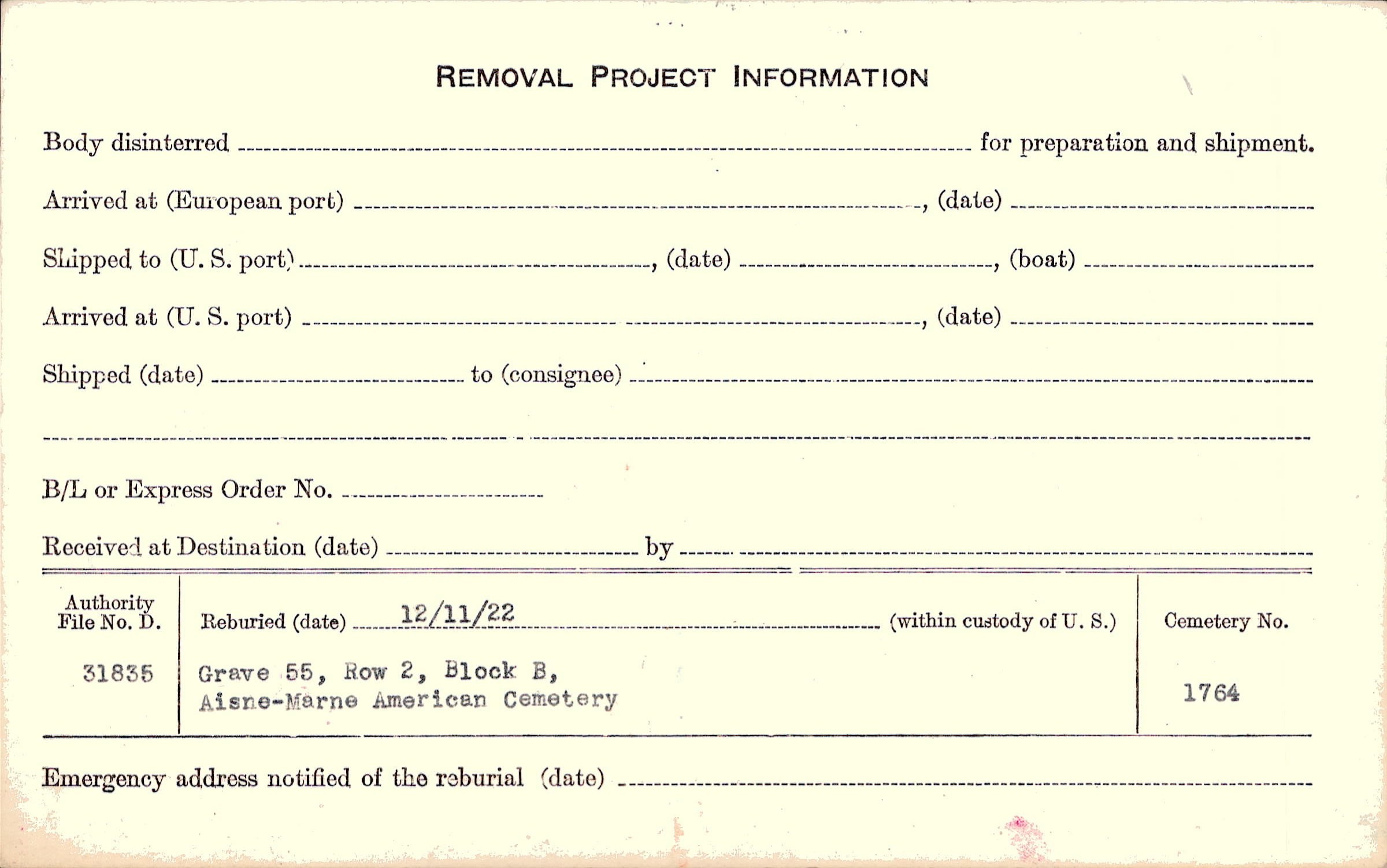 Grave 22, Cty. de Miomandre, #101, Cmme de Suippes, Marne