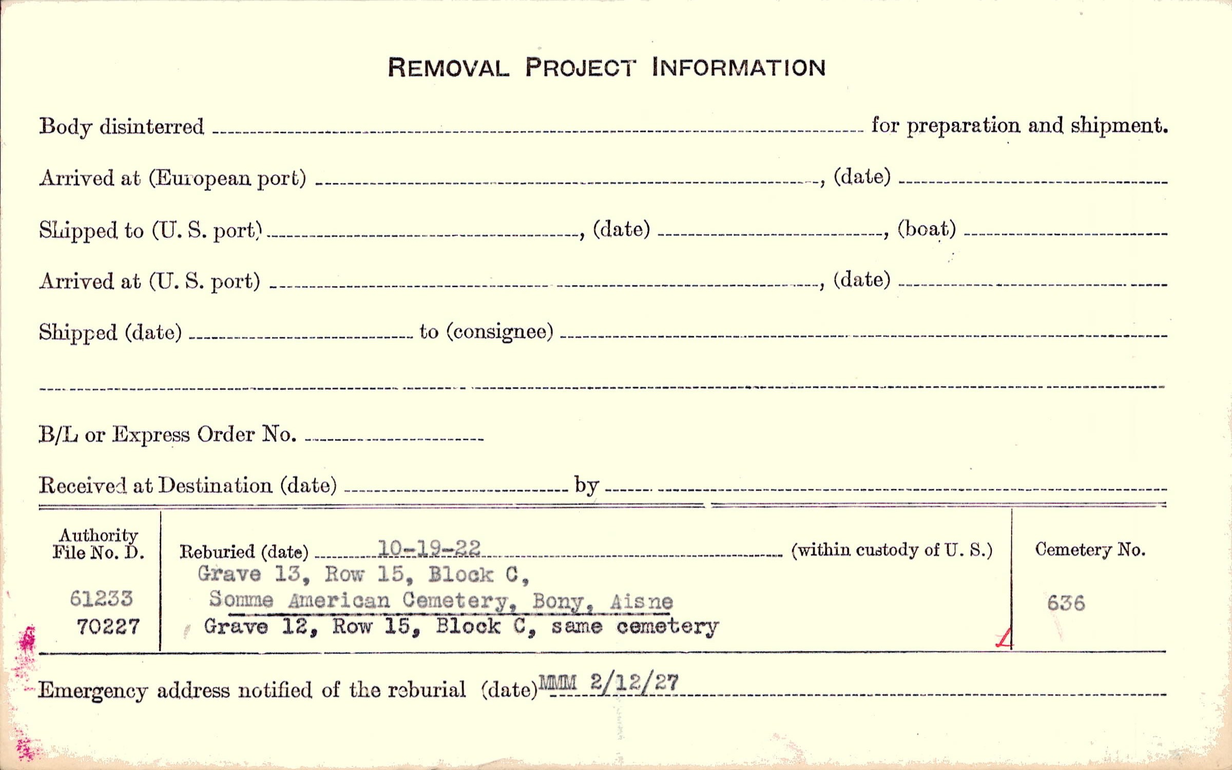 Prior Burial in Foreign Cemetery |