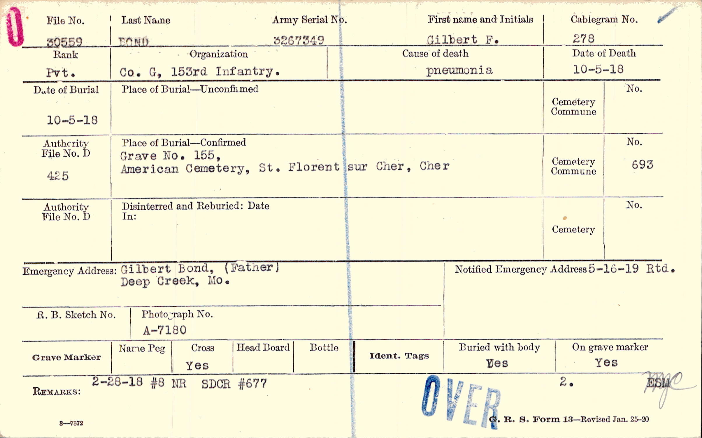 Gilbert Bond, (Father), Deep Creek, Mo.