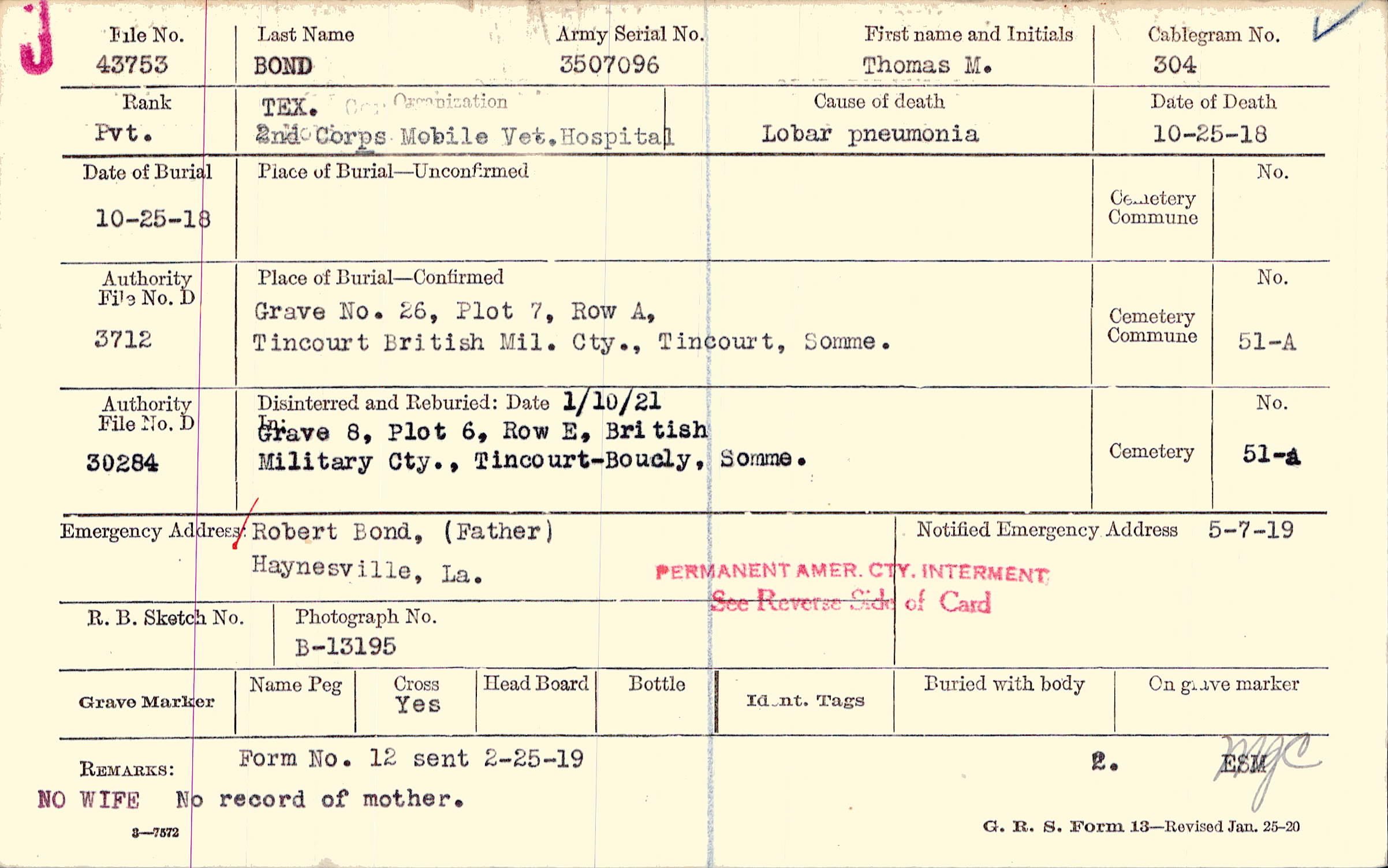 Prior Burial in Foreign Cemetery |
